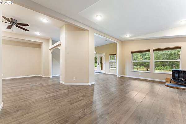 Est $3,248/moMove-in-ready 3BD/2BA on 5.6 private, well-maintained wooded acres south of Bandon, complete with walking paths, outbuildings, and a workshop. The home is in immaculate condition with high ceilings, pellet stove, stainless steel appliances, walk-in pantry, built-in automatic dustpan for easy cleanup and a large, bright laundry room. Spacious primary suite features a soaking tub and a huge walk-in closet. The oversized 2-car attached garage offers plenty of parking and storage. This is the secluded property you've been looking for!