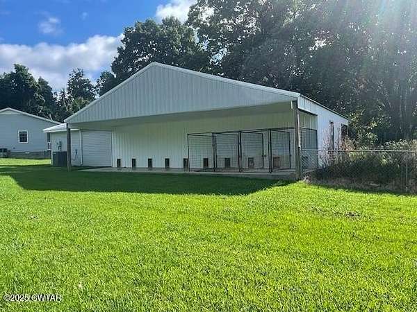 Est $1,979/moSpacious four-bedroom home with two full baths and two half baths - new flooring - fresh paint throughout - new appliances - large master bedroom and bath with walk in closet - covered porch overlooking nice pond - covered and partially screened in patio - 40x30 shop building with electric and water - 60x20 building with 10x40 awning on each side - most recently used as a dog kennel but could be used for a variety of purposes - all situated on 4.9 acres in the country