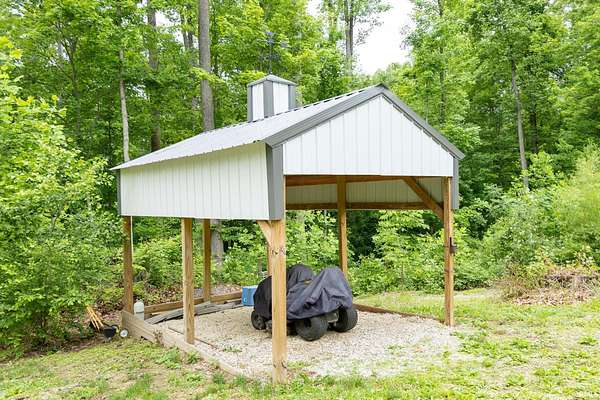 This 37+ acres with mature trees offers unlimited recreational opportunities as well as a wonderfully renovated cabin using locally sourced materials. Cedar and poplar salvaged from an old barn and fencing line the walls and give the interior a warm cozy feel. The new wood stove is the perfect source of heat for the cabin and the electrical wiring and panel with generator connection is all brand new. The plumbing is stubbed up for kitchen and bath. There are 6 tree stands included with wide trails throughout the property for easy access with any ATV or SXS. The hunting is great with abundant wildlife including deer, turkey, and even bobcats. This property is perfect for a weekend getaway, Airbnb, hosting family gatherings, or making this your permanent residence! Thinking about building? There is an absolutely beautiful spot on top of the ridge that would offer wonderful views. A variety of fruit trees including Plum, Pear, Apple, Pecan, and Persimmon are established now as well. There are also Blueberry and Elderberry bushes along with Grapes too! This great piece of land offers the piece, quiet and recreation that you are looking for but is less than 5 minutes to the local grocery store.
