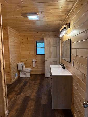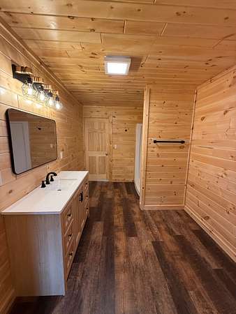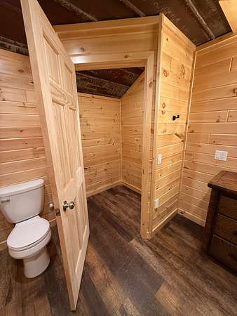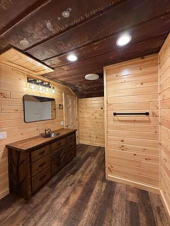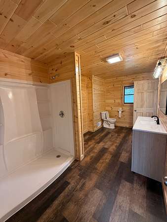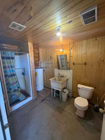 The impressive shop is a standout feature, complete with its own full bathroom, walk-in cooler, and a propane-powered heater—ready to support a variety of uses from workshop to small business operations.