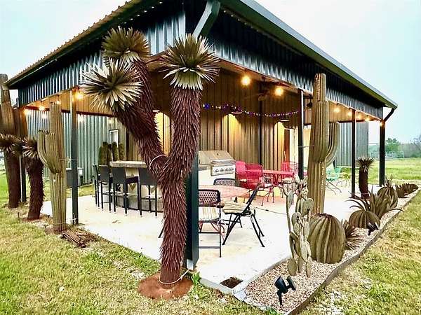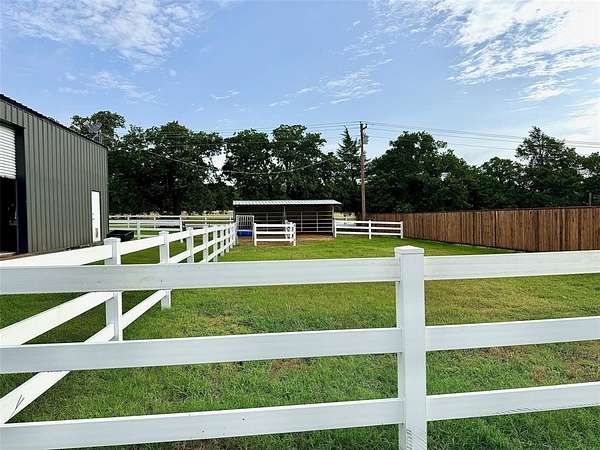 Barndominium with horse stalls on 8.4 acres. Gorgeous property with pastures and a pond, fenced in pipe and 5' no climb horse fence and white vinyl in the front. The barn area has 4 stalls, but could add more. Or, it could be your RV barn, or paint booth, whatever you need it for. Outside is a 2 stall barn with runs. Round pen set up and area for large arena. Electric double gated entry. Extra land available. Hi speed underground cable for internet and great water pressure. Small 3 bed, 2 bath apartment has been renovated to be a fun, cute place to live. The flooring is a high grade wood look vinyl plank, new granite counters and island that is a custom made metal base to match the custom staircase. The new appliances are the dark stainless. Frig has water and ice in door, the stove is a double oven. All match a beautiful bronze farmhouse sink. Downstairs bathroom has a new large tile and rock shower, and glass bowl sink in vanity. New wood look tile in both bathrooms. New Led lighting in the house. The apartment is 1280 sq ft and an extra 2,320 sq ft in the barn. Barn has 3, 12' roll up doors, 2 are electric. 3 walk thru doors. Tons of ventilation. New Led lighting inside barn. The outdoor patio is made to entertain. L shaped and covered. Lovely place to enjoy a little margarita time!! Most of the work has been done on a large pad site for large barn and arena. This property can be purchased as 8.4 acres or 18 acres with additional pastures and rv or home water and power. Additional $650K for extra 9.5 acres. Second matching entrance also.