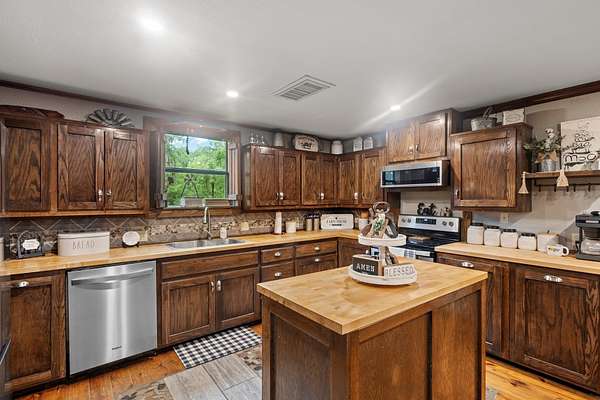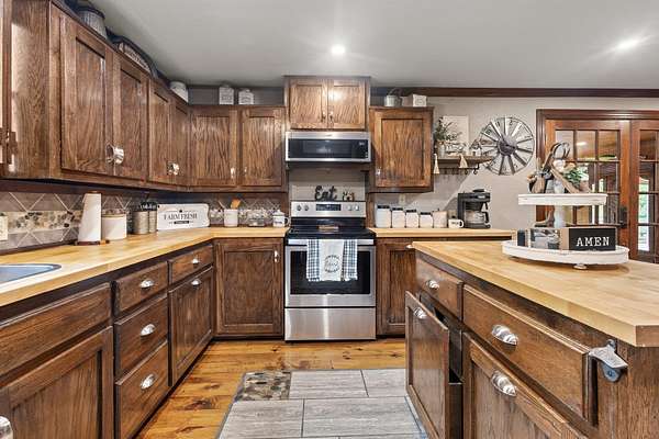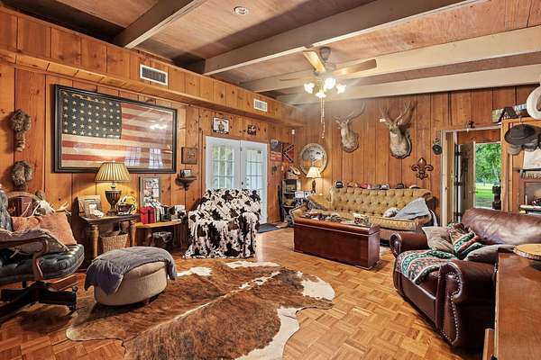 Est $8,448/moWelcome home to this secluded ranch on 113.556 acres at the end of a dirt road that also has private creek frontage! If you are looking for a move in ready ranch that is sure to be the location of holiday hosting and cattle raising this is it! This ranch features a 2440 sq ft home with 3 bedrooms, 2 bathrooms and a sun room as well as a 850 sq ft bunkhouse for guests, a 40x70 workshop/barn with a bathroom and 5 horse stalls, and a large covered patio for entertaining. This home has over 60 cleared and fenced acres but leaves plenty of wooded acreage for hunting, hiking, and wildlife watching.