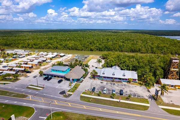 330 feet of Commercial WATERFRONT, located in Everglades City in the heart of the Florida Everglades. Property is located directly across from the new Marjory Stoneman Douglas Visitor Center for the Everglades National Park which attracts over 1,000,000 visitors per year. Property currently has a 200 seat restaurant, bar, outside dining and bar with large chickee, marina, gift shop and package store. Also includes a 3 bedroom/ 1 bath apartment and three 1 bedroom/1 bath cabins. All buildings were completely renovated and upgraded in 2021 meeting all new codes. Renovations include new fire sprinkler system, underground fire line with backflow preventer and fire hydrant, hood suppression system, new dock pilings, and more. Purchase includes a 4COP liquor license.