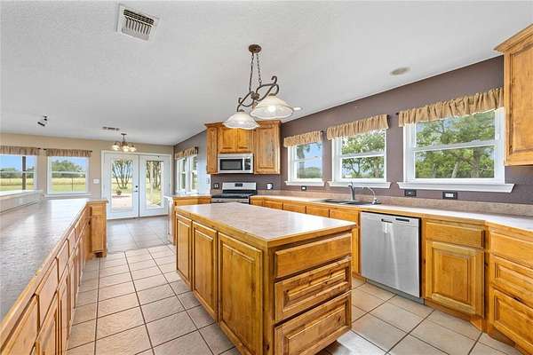 Tucked away at the end of CR 221, this custom-built 2,896 sq. ft. home offers a serene setting with wide-open views and versatile barns, perfect for show animals or horses. Designed with comfort and accessibility in mind, the home features extra-wide halls and doors throughout, ensuring easy wheelchair access.