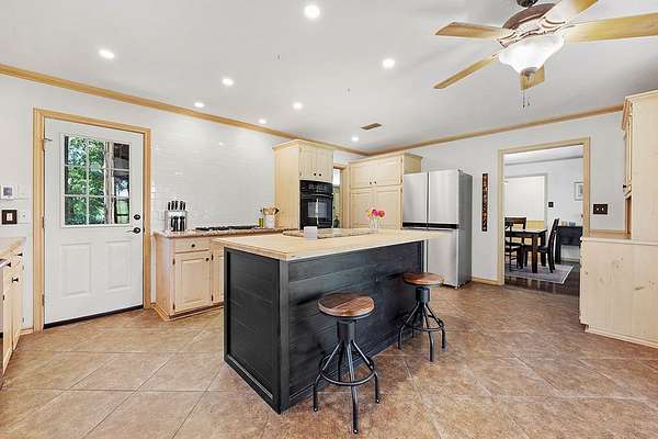 Nestled on 47 scenic acres of rolling hills and meadows, this 4 bed, 3 bath home offers peaceful country living with endless possibilities. Ideal for a cattle or horse ranch, the property features 3 year-round creeks, 2 water wells, and community water access. A large shop and metal awning provide ample storage for equipment. Enjoy mornings under the trees watching deer and wildlife. The home includes plantation shutters throughout, motorized shutters in the office/sunroom, and heated floors in the primary and upstairs baths. A 60KW diesel generator with a 250-gallon tank powers the home, shop, and wells. Guests will love the 1 bed/1 bath apartment with kitchen above the garage. Whether you want to run livestock or enjoy wide-open space, this property is a rare rural gem.