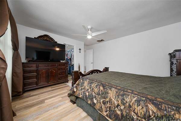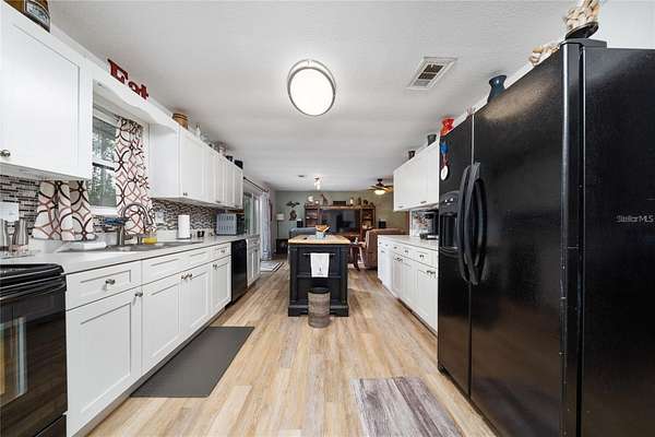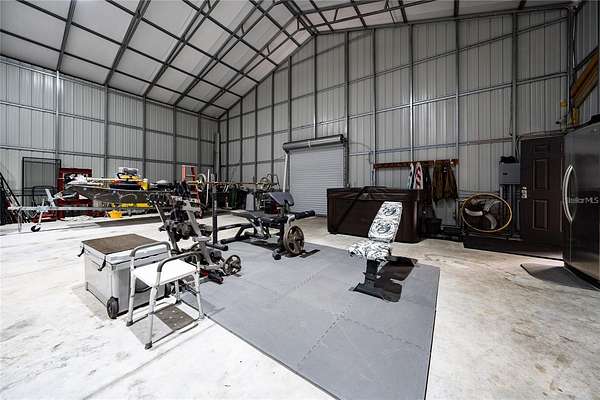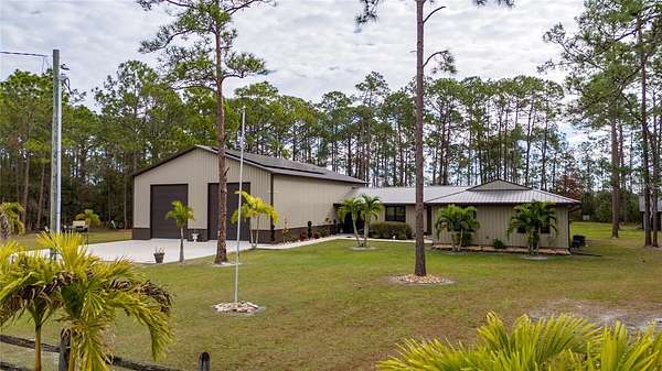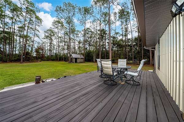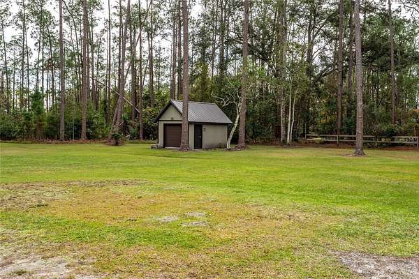 This unique property offers an ideal combination of privacy, space, and accessibility, situated on 7.9 acres of private land with a secure gated entry. The beautifully landscaped grounds feature a magnificent 42x60 barn, a storage shed, an above ground swimming pool and a charming home. Stepping inside the home, you'll find a spacious living room, an open kitchen offering plenty of cabinets and elegant French doors that lead to the formal dining room, currently used as an office. The master suite boasts a generously sized walk-in closet and a bathroom right out the door with both a walk-in shower and a walk-in tub. Three additional bedrooms, two connected by a French door, are located down the hallway along with a guest bathroom. The living room's sliding glass door opens to a huge back deck with peaceful views and abundant wildlife. A few steps down lead to a refreshing swimming pool, perfect for these hot Florida days. Off the kitchen, the laundry room provides access to a screened-in patio connecting the main house and the barn. The spacious 2500 sq ft barn has hook-ups ready to potentially add a full bathroom, offering endless possibilities for expansion, hobbies, or storage. Recent updates include a newer beautiful metal roof (2021), a newer septic and drain field, a private security system, a new water softener for the well, a newer well tank, a newer electrical panel, new pavers around the pool area, and solar panels installed just 7 months ago. The solar panels eliminate all your concerns about electric bills. This country home is ready for your personal touch.