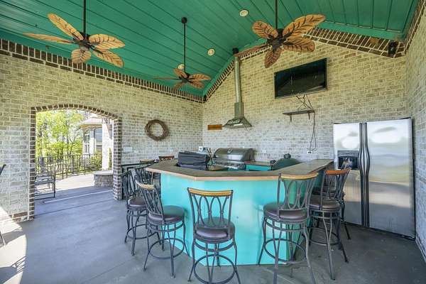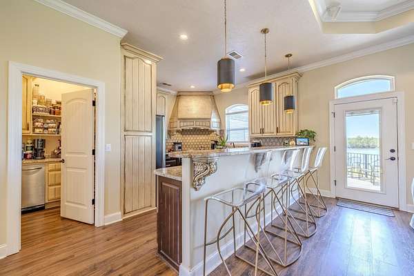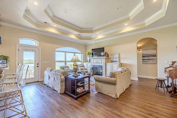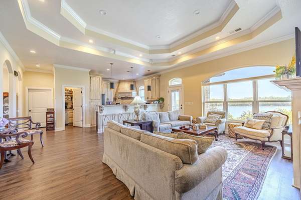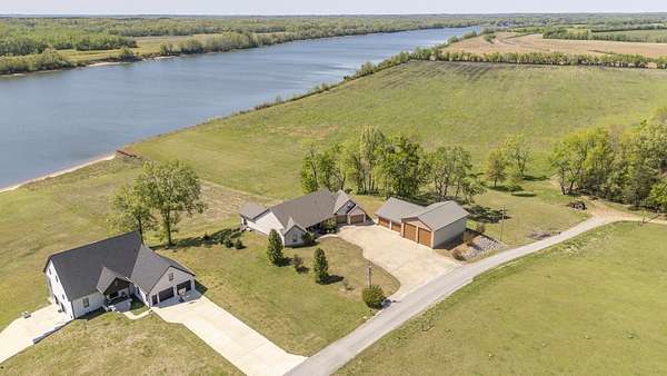 Tennessee Riverfront Home! This stunning custom built home offers approximately 3,100 heated sq ft & is perfectly situated on 4.98+/- beautiful acres, providing privacy, space & breathtaking sunset views. Featuring 3 bedrooms, 2 full baths & 2 half baths. The master suite doubles as a reinforced safe room, constructed with 12" concrete walls & 9" concrete ceiling, along with a spacious master bath for a true retreat experience. The chef's kitchen is a dream, complete with double ovens, ample cabinetry & plenty of space for entertaining. Step outside to an incredible outdoor living area featuring a built-in kitchen, surround sound & the perfect setup for enjoying those unforgettable TN River sunsets. Car enthusiasts, hobbyists or those needing extra space will love the 2,550 sq ft heated & cooled garage/shop, offering 16' & 12' bay doors, half bath & RV hookup bringing the total of 6 garage spaces. This one-of-a-kind property combines luxury, function & scenic beauty, truly a rare find.