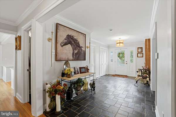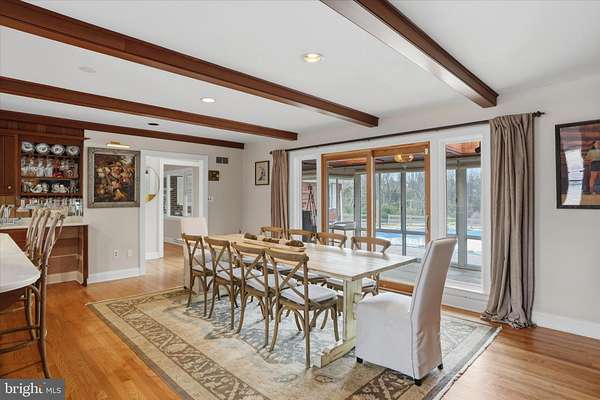 Nestled in desirable Pocopson Township within West Chester and located in the highly sought-after Unionville-Chadds Ford School District, this unique ranch-style home offers the perfect blend of charm, privacy, and modern comfort on 3.88 picturesque acres. Originally part of a historic 100-acre Pocopson Township farmhouse property, this residence provides a peaceful country setting while remaining just minutes from the shops, dining, and amenities of downtown West Chester. Step inside to discover a spacious and inviting layout, where slate flooring accents the foyer, and the living room sits just to the left, featuring custom built-ins that add both character and functional storage. The home offers five generously sized bedrooms and three and a half bathrooms, providing plenty of room for comfortable living. The eat-in kitchen serves as the heart of the home, complete with a cozy fireplace, a large island with seating, and ample space for casual dining. Just off the kitchen is a separate formal dining room, ideal for hosting gatherings and special occasions. Glass sliding doors from the kitchen lead into a bright and spacious sunroom, filling the home with natural light. From the sunroom, step outside to the patio and fenced-in pool area, creating a seamless indoor-outdoor flow that's perfect for summer entertaining or quiet evenings enjoying the surrounding property. The primary bedroom includes its own private en-suite bathroom. Two additional bedrooms are located in the same wing of the home and share a convenient Jack-and-Jill bathroom. On the opposite side of the home are the fourth and fifth bedrooms, one currently used as a home office, along with a full bathroom-creating an ideal setup for guests or a potential in-law suite with added privacy. This home also offers abundant storage throughout, along with a basement that provides additional storage space. The classic brick construction ensures durability while maintaining timeless curb appeal. Outside, the expansive grounds offer exceptional versatility. The property includes an oversized detached two-car garage and a 40' x 60' pole barn/workshop with an attached 32' lean-to-perfect for horses, equipment, or additional storage. With horses permitted, the acreage offers flexibility for a variety of rural lifestyle needs. Offering peaceful country living with convenient access to West Chester's vibrant downtown, this one-of-a-kind property is a rare opportunity to enjoy space, character, and flexibility in a beautiful and private setting.