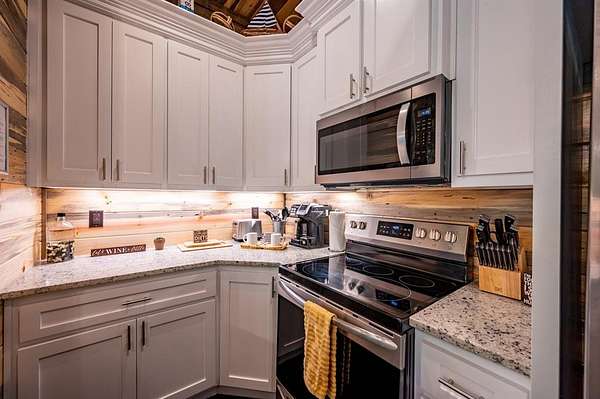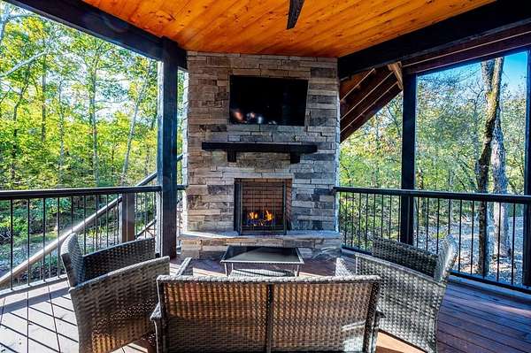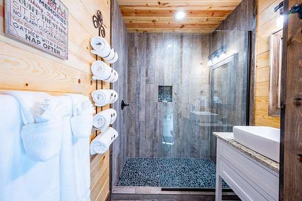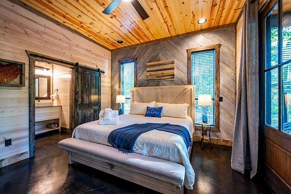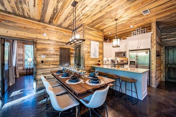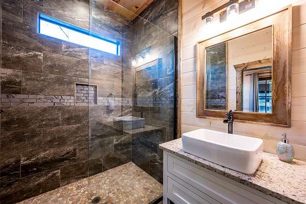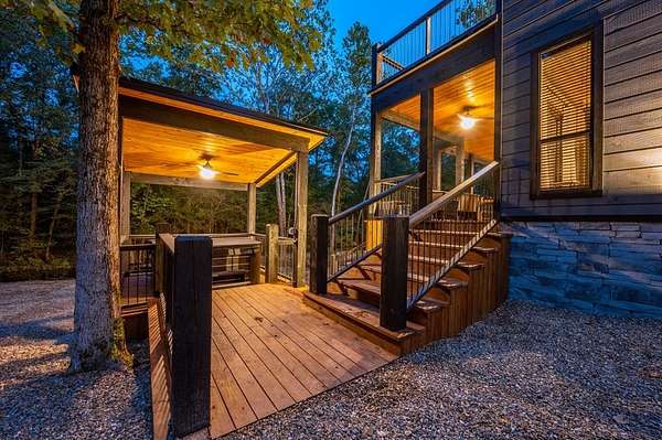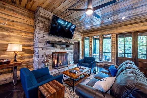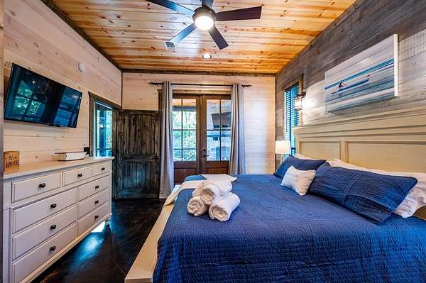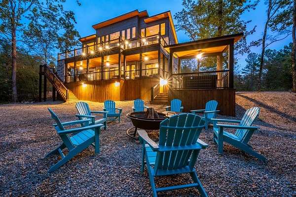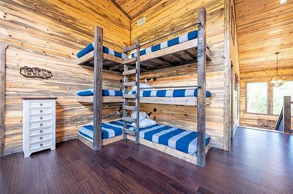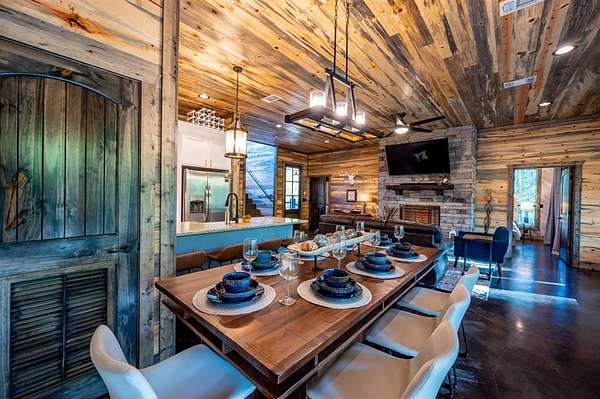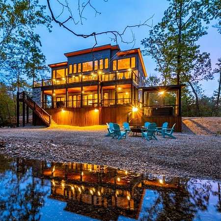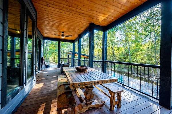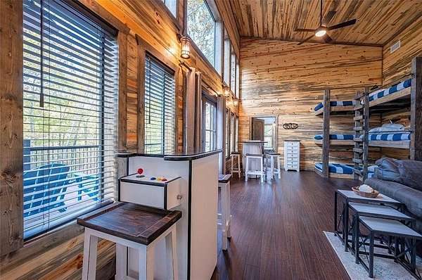 Island in the Stream Cabin has been a successful short term investment since the end of 2020. The location of this cabin in Eagle Mountain Phase 2 is a coveted location. Secluded, on a YEAR ROUND CREEK, within walking distant of restaurants yet far enough off the beaten path with no highway noise. This Luxury Cabin features 4 King Master Suite Bedrooms each with their own private full bathroom; Bunkroom/Gameroom with 6 twin-sized bunk beds, a queen sleeper sofa and a full-sized bathroom; Two Large Waterfront Decks; an Incredible Location and many other amenities that make this a one-of-a-kind cabin experience! (Sleeps 4 to 16) On Site EV Charge. This vacation rental cabin offers a secluded, peaceful retreat nestled in sycamore and pine trees on the waterfront of a beautiful stream, and faces west for unforgettable sunsets. Located in the gorgeous Eagle Mountain area of Hochatown, you are only minutes away from all the adventures of Broken Bow Lake, Mountain Fork River and Beavers Bend State Park. This is a true vacation oasis! Island in the Stream Luxury Cabin features more than 3,000 square feet of opulent cabin living on a gorgeous 1.4 acre stream front plot. It has a spacious, covered waterfront deck that includes several outdoor dining and seating areas, a large hot tub and gas fireplace. There is also a huge second floor sundeck located just off the upstairs bedrooms and game room to enjoy sunrise, sunburn, sunset, repeat...or a wonderful night under the stars. Each bedroom has it's own door out to the deck. Other amenities include a Stereo with Record Player, 412 game Table Top Arcade, Full Kitchen and Dining Area as well as several living spaces to relax and enjoy your vacation. Don't miss out on the large firepit area right next to the stream. This Luxury Cabin will make any trip a very memorable experience. Take a tour by viewing the walkthrough video. TAKE A TOUR BY VIEWING THE WALKTHROUGH VIDEO. For a video link, contact the Listing Agent