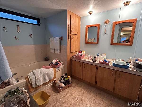 The existing mobile home features an open floor plan with ample space, a large living room with a fireplace, and a spacious primary suite with a walk-in closet, private bathroom with a jetted tub, double vanity, and separate shower. The home offers flexible use; with a little updating, it can serve as the primary residence or serve as temporary housing while you build your dream home. This home also comes with a 24x24 two-car garage and two additional storage sheds.
