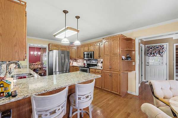 Opportunity awaits at 875 Sixteenth Model Rd in Manchester! This stunning property is surrounded by mature trees and offers peaceful country living. The well-maintained home features a welcoming front sitting porch, entry foyer, formal dining room, and hardwood floors throughout. Enjoy a spacious kitchen with double ovens and a functional split floor plan. Upstairs includes a large bonus room with an additional flex space that could serve as a bedroom or multi-family living area. Relax on the large back deck overlooking the beautiful backyard. The property also includes a large shop with 220 wiring and loft space, plus a garden shed and multiple garden areas—perfect for hobbies, storage, or outdoor living.