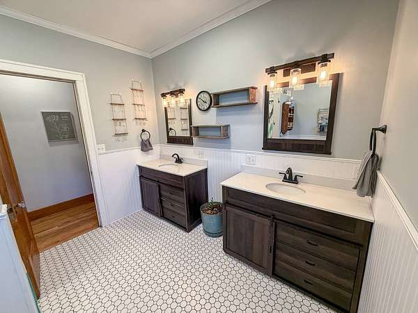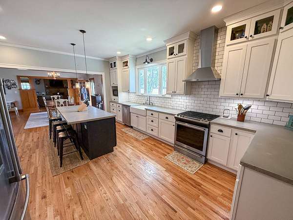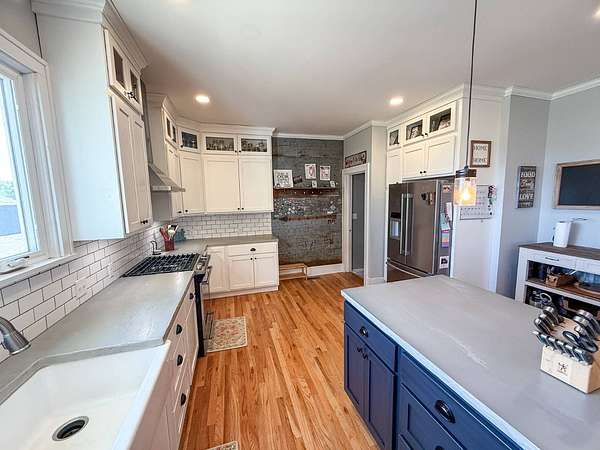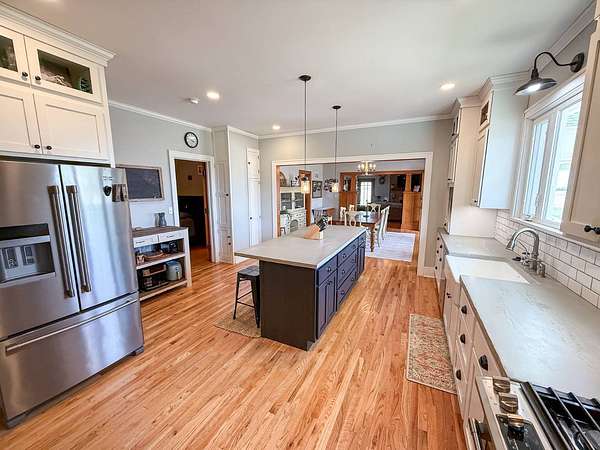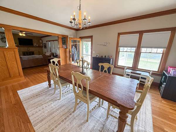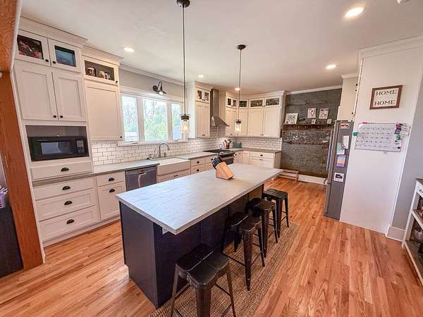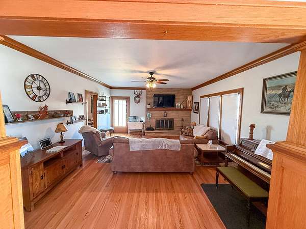 Welcome to your serene retreat! Located on the county line between St. John and Pratt, Ks., this beautifully renovated 4-bedroom, 2-bathroom country home is ideally situated on 14.45+/- acres. With 1,560 sq. ft. of well-designed living space on the main floor and an additional 1,560 sq. ft. in the basement, this home offers generous and flexible space for any new buyer. Many modern upgrades exist throughout, but none have sacrificed any character. From floors and trim to doors and columns, original oak woodwork is still a standout feature in this home. The living room features a cozy stone, wood-burning fireplace with original glass front doors and complimentary wood mantel. The inviting, open-concept kitchen is completely remodeled, provides ample space with floor-to-ceiling cabinets, and comes complete with stainless steel appliances. A center island offers not only an expansive worktop, but also adds seating for an eat-in-kitchen experience. A farmhouse style sink, subway tiled backsplash and epoxy countertops (made to look like concrete) tie this room together. Three nice-sized bedrooms and one full bathroom are located on the main floor. Multiple bonus rooms plus an additional bathroom exist in the basement. (Egress window is located in the basement living area.) The basement utility room comes complete with washer, dryer, dual water softeners, water heater, utility sink and HVAC. An attached 2-car garage provides easy access and additional storage. In addition, this property has a 72'x40' metal shed with partial concrete floor. These country acres offer plenty of opportunities for outdoor recreation, enjoyment, gardening, and exploring nature. Don't miss your chance to own this piece of paradise! Call listing agent to schedule a showing. Please allow 4 hour notice as the home is occupied. Key Features: Renovated 2018, 14.45+/- Acres, Attached 2-Car Garage, 72'x40' Metal Shed, 3,120 Sq. Ft. Total (1,560 each floor), Finished Basement, Egress Window, Concrete Covered Porches, Vinyl Siding, Guttering, USD 350.