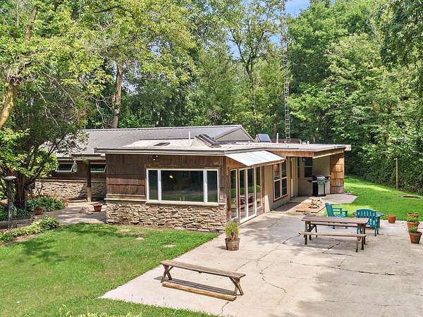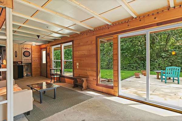 PRIVATE 1.5 Acres Woodland RETREAT | FURNISHED COTTAGE | WORKSHOP | MOTIVATED SELLER Tucked away at the end of a tranquil lane, this fully furnished cottage offers a rare opportunity to own a private, creek side get-away on 1.5 wooded acres with LOW taxes. Surrounded by mature trees, wildlife, and trails, this peaceful haven feels worlds away-yet fully equipped. Thoughtfully updated over 30 years, the home blends rustic charm with artisan craftsmanship, evoking a retro mid-century / '70s industrial cabin vibe that's truly one of a kind. Repurposed millwork, custom trim, knotty pine finishes, and vaulted multi-pane windows create warmth, character, and timeless appeal. INTERIOR HIGHLIGHTS: * Fully furnished - move-in ready executive cottage * Vaulted living spaces filled with natural light * Kitchen with hand-cut ceramic tile backsplash & generous counter depth * Spa-inspired bath with oversized shower * Massive heated four-season sunroom with studio nook * Easily convert part of the sunroom into a third bedroom * Movable, lighted dry bar for entertaining * Unique details throughout that invite you to step back in time-without sacrificing comfort OUTDOOR LIVING: Large patio and grill area-perfect for cookouts, yoga, or quiet space with a book; Tandem 2-car garage with WORKSHOP, shed, and mower. Most workbenches are on wheels for easy arrangement. Whether it's a winter wonderland escape or a lush summer sanctuary, this property offers a living experience in a truly unique style of home. Be one with nature, enjoy total privacy, and own a retreat that simply can't be replicated. Updates: Furnace (2022), Water heater (2024), Dishwasher (2025) Offered As-Is. Ready for its next chapter-could it be yours?