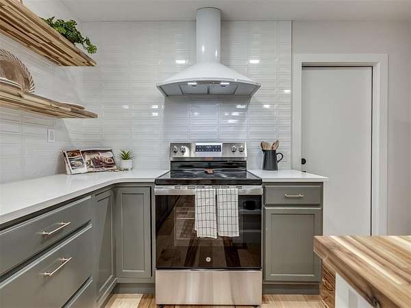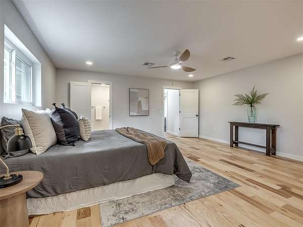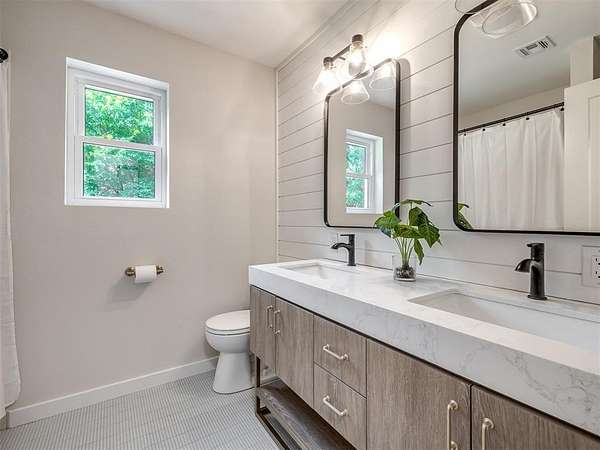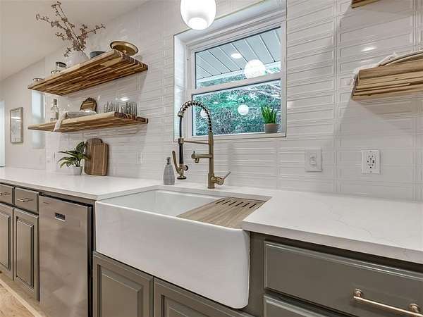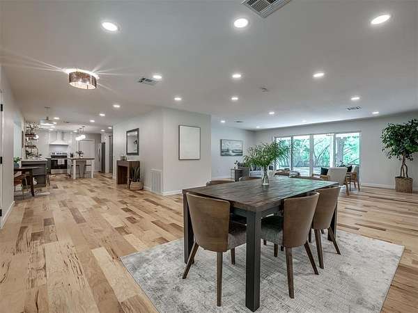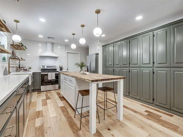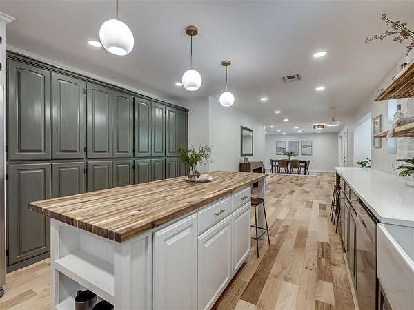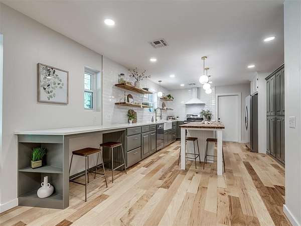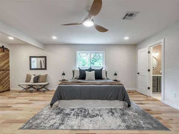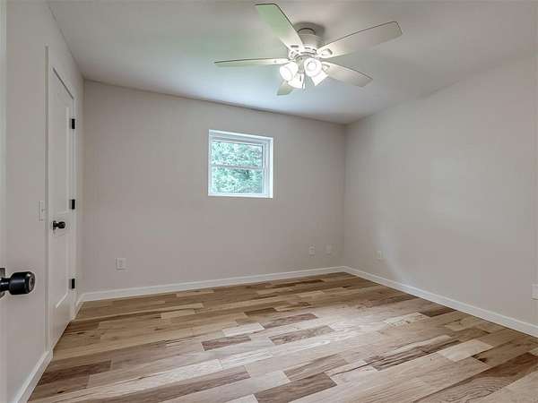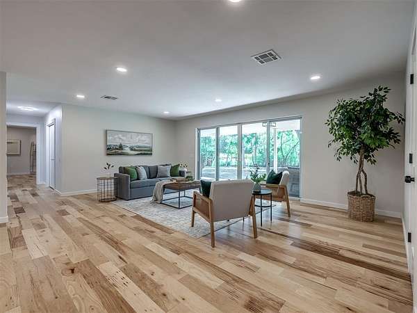 Welcome to 8750 Hartman Rd., a fully renovated home nestled on a stunning 3.5-acre lot in Noble. Surrounded by towering mature trees and tucked away for privacy, this property offers tranquility, space, and high-end modern finishes-all just minutes from town. Inside, you're immediately drawn to the expansive 12-foot sliding glass doors that open to a serene backyard with open views of a wildlife-filled pond, fed by a creek, and a majestic pecan tree as its centerpiece. Nearly every surface of this home has been updated. Enjoy new wood floors throughout, level 5 smooth walls in the main areas and primary suite, brand-new windows, fresh interior and exterior paint, new doors, trim, baseboards, switches, and outlets. The custom kitchen features floating acacia shelves, a large 3x8 butcher block island, tile backsplash from counter to ceiling, a farmhouse sink, new lighting, and new stainless steel appliances including oven, dishwasher, refrigerator, and vent hood. Both bathrooms include new countertops, sinks, toilets, plumbing fixtures, and modern design details. The oversized primary suite is a true retreat, with a massive walk-in closet accessed by a custom barn door and a beautifully remodeled en-suite bathroom. New ceiling fans provide comfort throughout, and the large covered back porch is perfect for morning coffee or relaxing evenings while enjoying nature. Located just 9 minutes to downtown Noble, 15 minutes to Lake Thunderbird, and 20 minutes to Norman and the University of Oklahoma. This home offers the best of both worlds-modern living with the peace and beauty of the country. A must-see property and true labor of love!