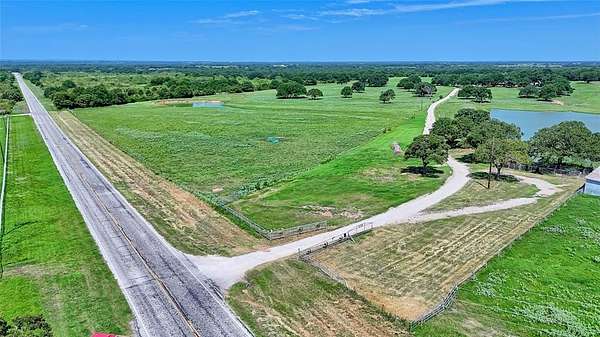 116 Acres of Texas Beauty and Opportunity! This incredible 116 acre property with scattered oak trees and Fm 1749 frontage offers the perfect blend of natural charm and agricultural functionality. Along with a move-in ready home with panoramic views, this is a haven for ranchers and dreamers. This well-designed property boasts expansive acreage covered in lush coastal grass, ideal for grazing and hay production. The land is thoughtfully cross-fenced and features a fully operational set of corals, streamlining livestock management and rotational grazing. With 2 water wells, including one conveniently located near the corrals and 4 large ponds, your cattle will always have access to a reliable water source. Property also includes a large, impressive, insulated shop with roll-up doors, separate office space and outdoor coverage perfect for storage or workspace. Additionally, there are 3 electric meters, a barn, and a large covered parking area for tractors and equipment. This exceptional find also has a sprawling 2,264 sq ft, 3 bed 2.5 bath home positioned to take advantage of the gorgeous views. The home has an open floor plan and split-bedroom layout offering ample space and opportunities for the entire family. The kitchen with granite counter tops and double oven is open to the main living area and has a pass-through opening into the large flex space with an additional fireplace. Whether you are looking to expand your herd with this ready-to-go operation or settle into peaceful country living with room to grow, a property with acreage of this Quality is a rare find.