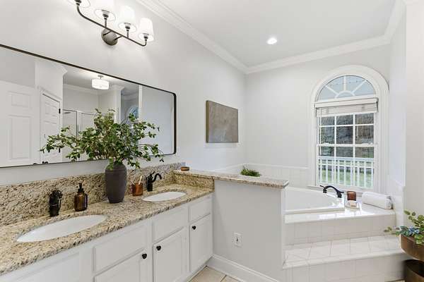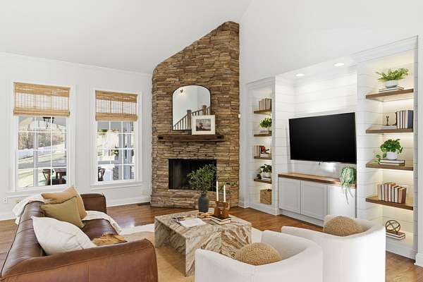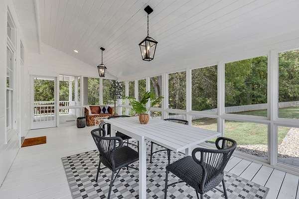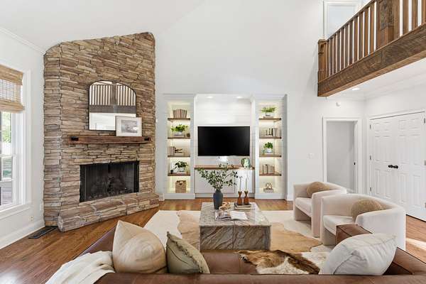 The spacious living room features soaring ceilings, custom built-ins, & a fireplace w/ a reclaimed wood mantle & beam wrap crafted by Good Wood Nashville. The kitchen is functional & inviting w/ granite countertops, a reverse osmosis water filtration system, & a new custom-fit gas range & refrigerator. The main-level owner's suite is a true retreat, offering private deck access, a custom walk-in closet, & an en suite bath w/ a jacuzzi tub.