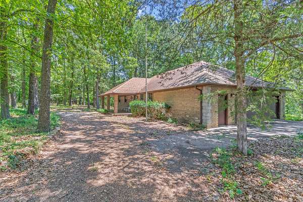 Welcome to your own private retreat with approx. 40 ac. of timber and cleared meadows to enjoy hunting or walking trails. There is a spring fed creek running through the property, a pavilion is located on the edge of the creek. This one owner home was custom built with many unique features including a hot tub and sauna located just off the master suite. From the large covered front porch you enter the great room with a tray ceiling, wood burning fireplace and lovely bookcases. The kitchen includes a center island snack bar, stainless appliances and tile flooring plus a walk-in pantry. The master suite includes a fireplace and is on the main floor. The additional bedrooms are in the walk-out basement with an additional living space and storage. Enjoy evenings or mornings on the screened in deck plus an unscreened deck area also. A wet water creek flows at the back of the home and provides additional fun for this property located so near shopping, schools and hospitals yet so private! Additional land is available.
