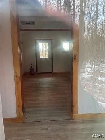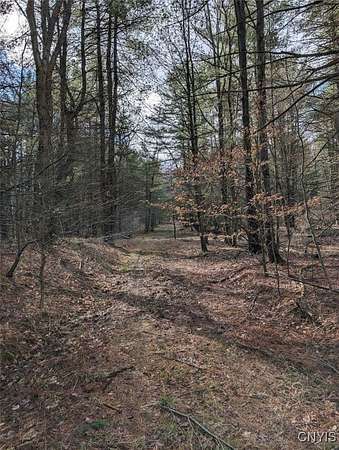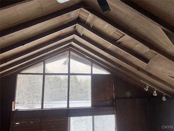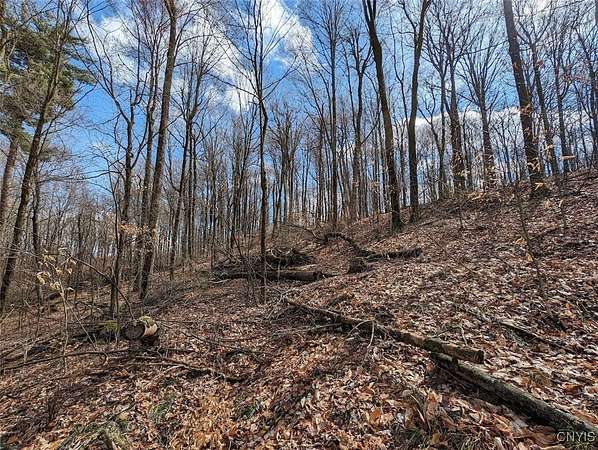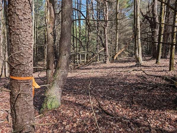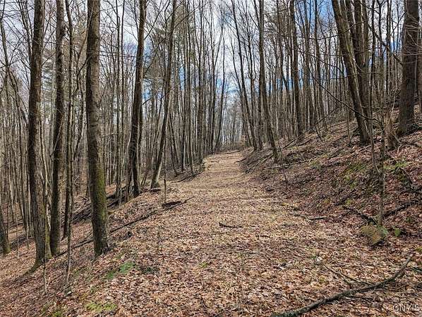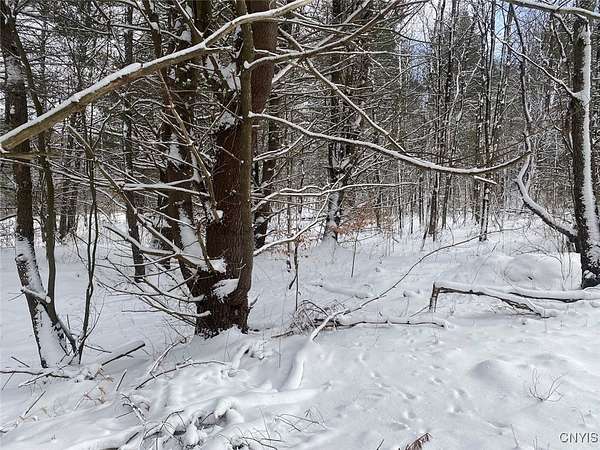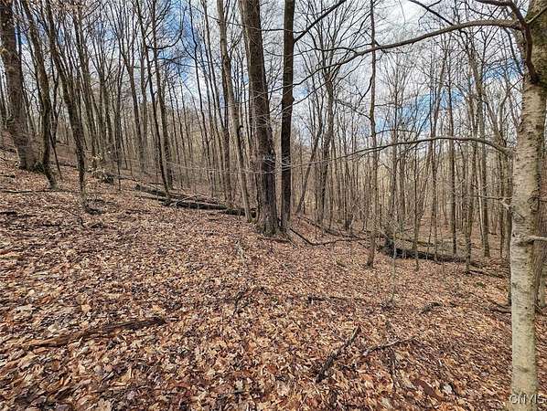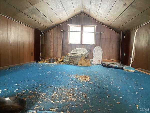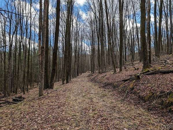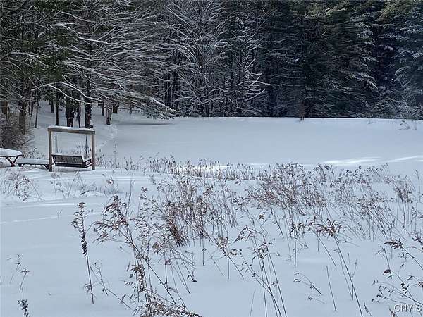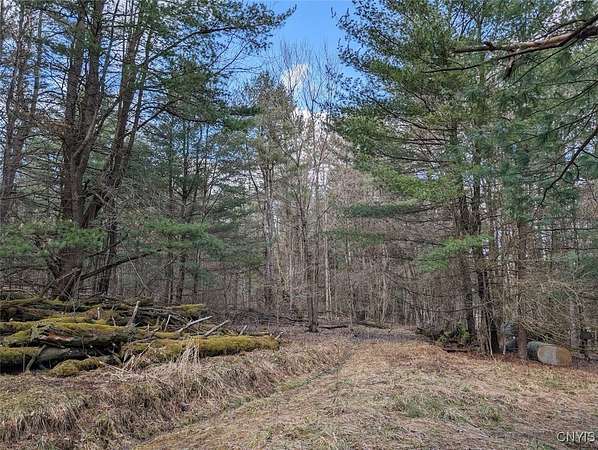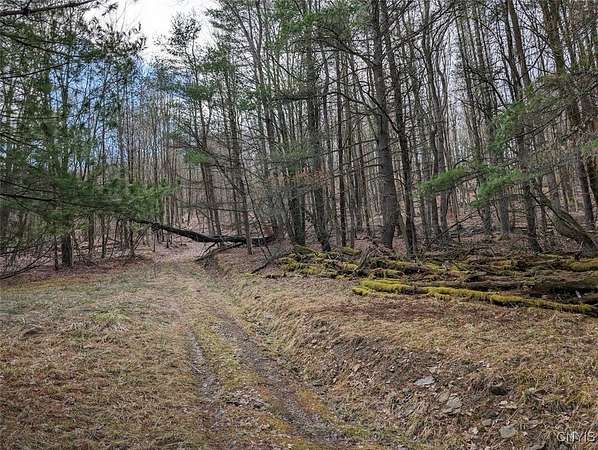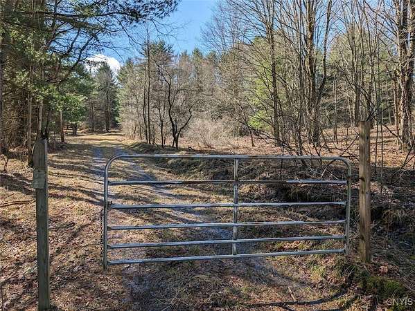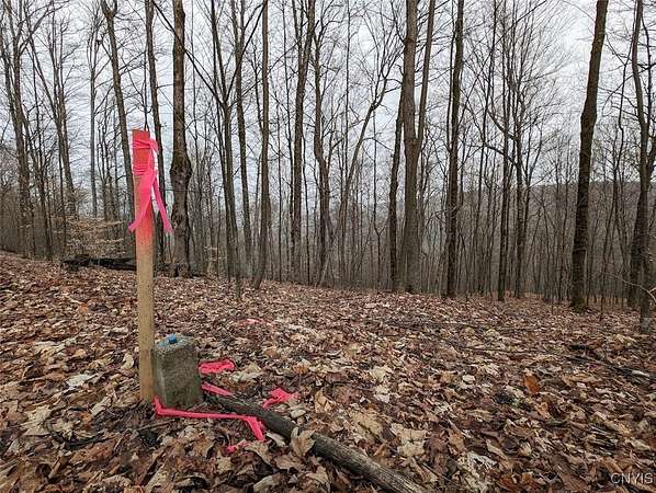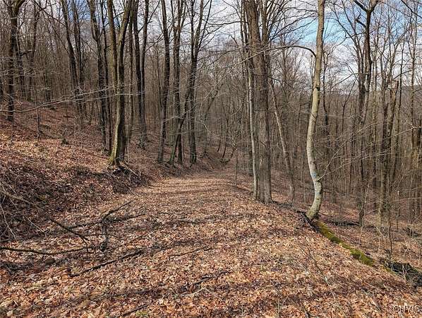 This hunting camp with pond sits on 60.87 acres located in Genesee NY, Allegany County. An ideal getaway opportunity featuring a secluded two-bedroom camp on recreational acreage. A private driveway leads to the camp which is constructed with concrete block walls, and the foundation and walls appear to be in good condition. The main level includes a full kitchen along with a combined living and dining area featuring rock-laid flooring and a rock fireplace. The living room offers a sliding glass door overlooking a spring-fed, stocked pond. One bedroom is located on the first floor, while stairs with handmade ash wood steps lead to a large loft suitable for a second bedroom. The camp is equipped with a new 200-amp circuit breaker box. The camp is in need of cleanup and renovation and is being sold as-is. The acreage consists of a mix of pine and hardwood trees with established ATV trails and abundant wildlife including whitetail deer. Excellent hunting opportunities are present. A recent survey is available, and all rights convey with the property.