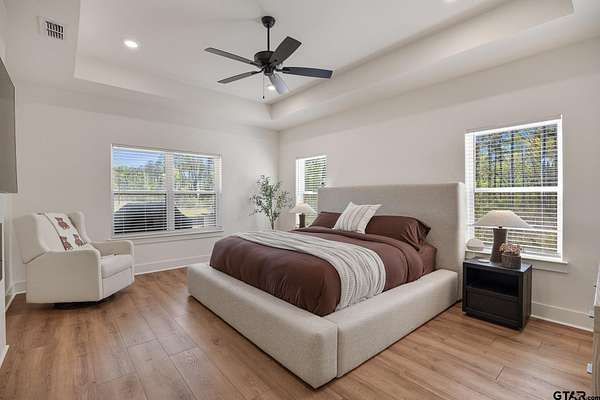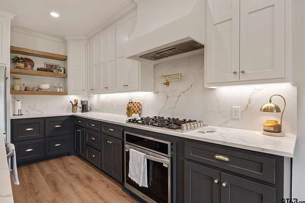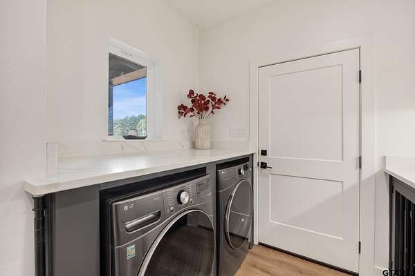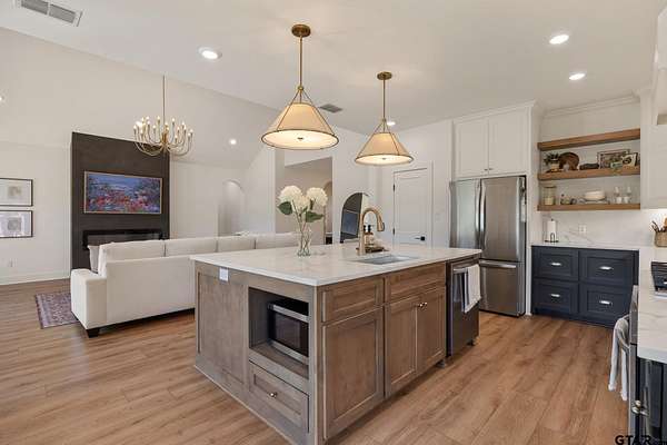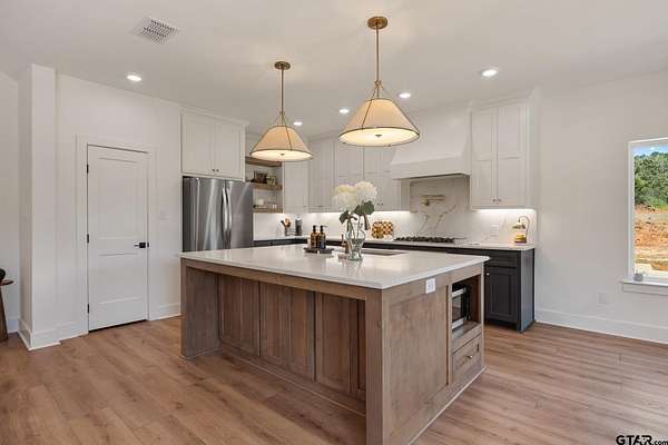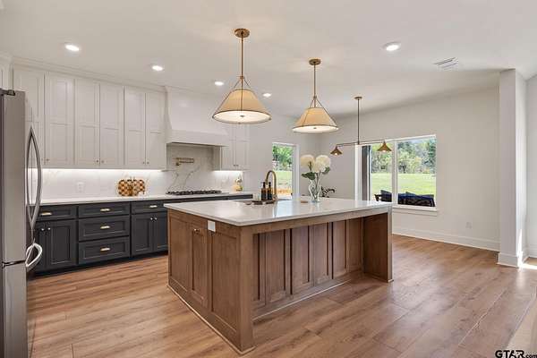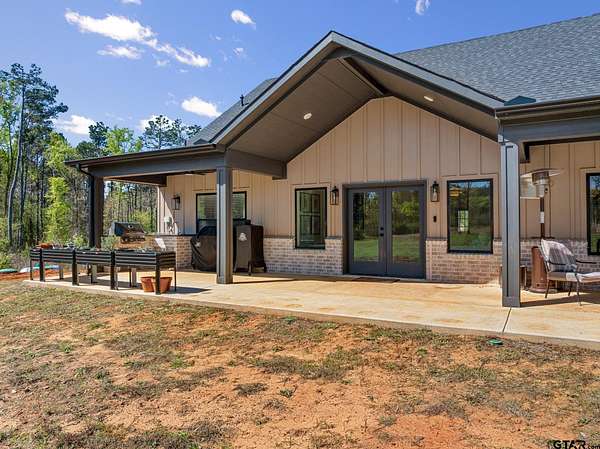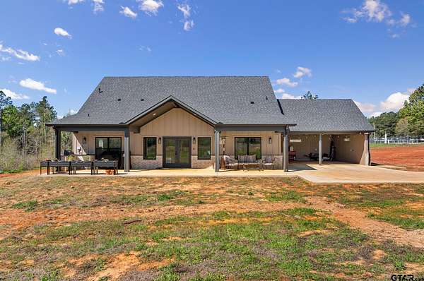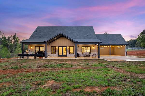 Welcome Home where country living meets modern amenities! This beautiful custom built home is situated perfectly on 10 acres located just outside the city limits of Jacksonville and is a short 20 minute drive to South Tyler. Built less than 2 years ago, this home features everything you need and many of the things you didn't know you wanted! The arched doorways add a touch of elegance throughout while the breathtaking kitchen includes a large custom island with ample storage, Quartz countertops and a full quartz backsplash for a seamless, high-end look. Designer lighting fixtures elevate the aesthetic of the open concept living, kitchen & dining areas. The quartz countertops continue into both bathrooms & champagne-toned hardware and fixtures throughout give off a luxe vibe. Loose lay vinyl plank flooring throughout allows for easy maintenance. And if that wasn't enough, the laundry room features a fully tiled dog washing station for your favorite four-legged family members! But wait there's more! All bedrooms are spacious & thoughtfully designed with tons of natural light! And the primary suite is the cherry on top! This space provides ample room that includes an electric linear fireplace, creating a true retreat feel. The double closets with custom built-ins and the spa-like primary bath will quickly become your place of zen. And the outdoor living space is just as impressive. The back patio is covered with two large outdoor ceiling fans to keep you cool in the Texas heat. And you'll need them while you cook in your outdoor kitchen that features a built-in grill & stainless steel sink with granite countertops. The oversized car carport has plenty of storage space and another outdoor ceiling fan to keep you comfortable while you tinker on your favorite toys. Last but not least, this Smart Home is wired with ethernet throughout and includes hardwired ethernet cameras. What more could you ask for?