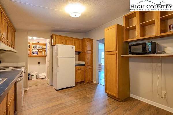 This Diamond in the rough screams "Serene Oasis"- with 5 sprawling acres tucked back on the mountain side this charming 3 bed 2 bath manufactured home boasts over 1200 spacious square feet of partially open concept living area. Just off the living room is a nice deck overlooking the log range layered mountain views. With some additional clearing you can see for miles across the valley of the Sugar Grove and Vilas Communities. Step out back to a large detached 1 car garage/workshop area that has just over 760 square feet of multipurpose usable space. Up the exterior stairs is an additional unfinished area just shy of 500 square feet that could be used for a game room, office or additional living space. All you need is a vision and a little TLC and the possibilities are nearly limitless. So if you're looking for seclusion to enjoy nature at its finest then this property would meet your expectations. Just a short 35 minute drive to Boone or 20 minutes to Mountain City, Banner Elk or Watauga Lake you will have all the amenities that the High Country has to offer right at your fingertips and YOU MUST COME SEE FOR YOURSELF.