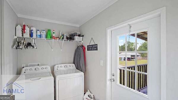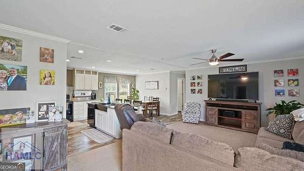 Welcome to 876 Hires Road in Jesup, Georgia, where privacy meets polished country living. Situated on 3.52 acres of beautifully maintained, carpet-like St. Augustine grass, this 3-bedroom, 2 bath home offers the space and serenity buyers are searching for, all within the desirable Odum Elementary school district. Inside, you'll find a well-appointed layout featuring luxury vinyl flooring in the main living areas and plush carpet in the bedrooms, complemented by full sheetrock walls and crown molding throughout for a refined finish. The kitchen showcases attractive cabinetry and flows seamlessly into a dedicated dining area, creating an inviting space for everyday living and entertaining. The primary suite is designed for comfort, featuring a soaking tub, separate shower, and a spacious Jack and Jill vanity setup. Step outside to a covered back deck overlooking your private acreage, ideal for relaxing evenings or weekend gatherings. The home is complete with custom treated wood skirting, as well as a private well and septic system for true self-sufficient country living. If you're looking for peace, space, and a move-in ready home with thoughtful upgrades, this one delivers. GREAT NEWS, title has been retired so VA, FHA, USDA financing are available.