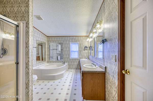 - Ceiling Fan(s), Gas Log, Kitchen Island, Walk-In Closet(s), Walk-In Shower