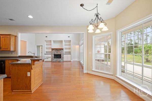 - Breakfast Area, Breakfast Bar, Built-In Features, Double Vanity, Garden Tub/Roman Tub, Main Level Primary, Separate Shower, Tray Ceiling(s), Vaulted Ceiling(s)