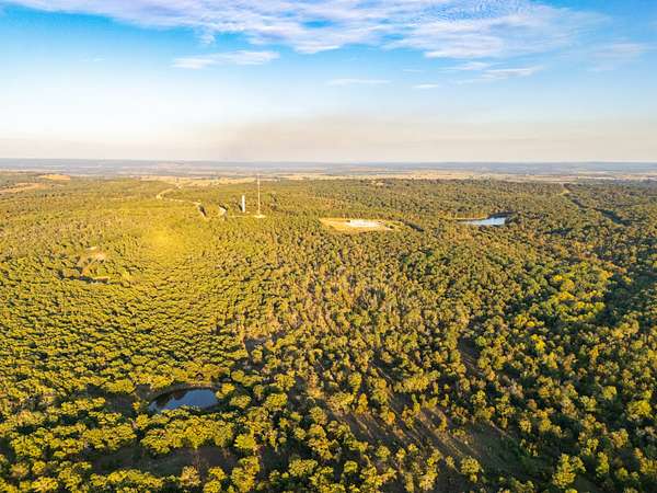 Located in Hughes County right off Highway 9 near Dustin, this 290 +- acre property combines outstanding hunting and recreation with the potential for future development! The land consists of two tracts: a large 280 +- acre parcel and a separate 10 +- acre timbered tract northeast of the main acreage. The main tract features diverse topography, with rolling timbered ridges, quick drops in elevation, and scattered clearings that create excellent wildlife habitat. Three ponds and a wet-weather creek on the southern end provide reliable water sources and fishing opportunities. This property holds great hunting opportunities, with abundant deer and turkey. Several blinds and feeders are already in place, with plenty of room for additional food plots or setup. At the entrance, a gated clearing offers an ideal spot for future development, whether for a homesite, ranch headquarters, or a hunting lodge. In this same clearing, there is also a cabin that could be renovated and restored to serve as a base camp. Easily accessible to both the 280 +/- and 10 +/- acre tracts, this property delivers the space and versatility for multiple uses! Conveniently located just 23 +- minutes from Henryetta, 38 +- minutes from Eufaula and Eufaula Lake, and 1 hour and 15 +- minutes from Tulsa, it offers both seclusion and accessibility. Whether you're seeking a premier hunting property, a private getaway, or the perfect site to build your dream home, this property offers the land, location, and possibilities to make it your own! All showings are by appointment only. If you would like more information or would like to schedule a private viewing please contact Will Bellis at (918) 978-9311 .