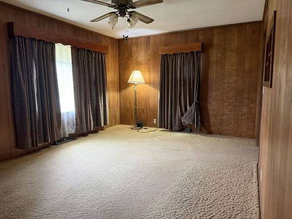 Est $957/mo$164,999 4.5 Acres 5 bedroom house 1 bathroom Central heat and air Rural water 2 car carport Fully fenced All new paint On propane Pond Separate shop with a wood stove