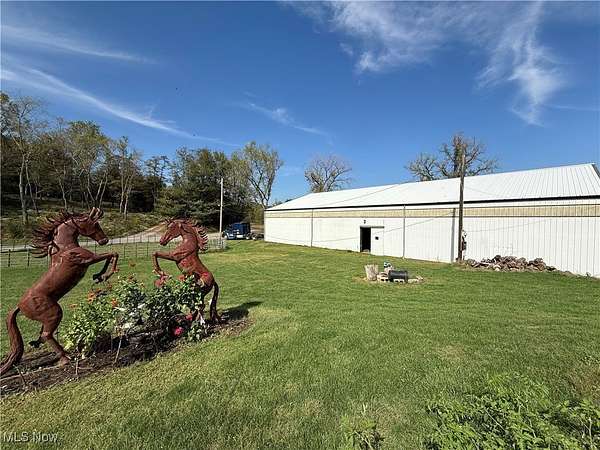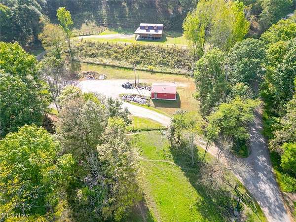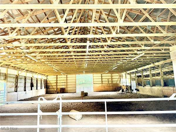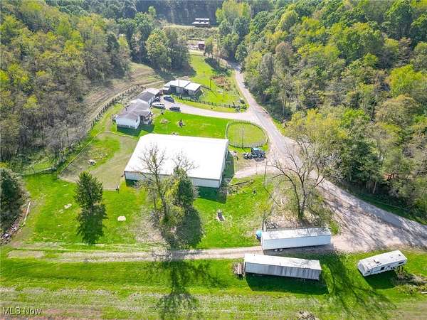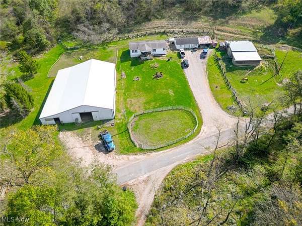Beautiful 36.07 Horse Property with 2 Homes & Arena/ 2 car garage/ lean to/ detached barn with stalls, riding areas fenced in... Charming country estate featuring two homes, a riding arena, and a full horse barn facility. - Main Home: 3 BR, 2 BA, fireplace w/pellet burner, AC, first-floor laundry, appliances stay, 2-car garage. Electric, pellet stove / approx 1640 sq ft. - Second Home (Upper Property): 1 BR, 1 BA, custom wood construction, perfect for rental/hunting lodge. Upstairs easily converted to 2 add'l bedrooms.aprox 950 sq ft - Barn/Equestrian Facilities: 80x100 riding arena, 16 stalls (8 main 10x12 + 8 upper), wash bay, tack room, feed room, bathroom, office. Barn has own well & 3 separate electric systems. - Land: 36.07 acres w/woven wire fencing, concrete slab foundation areas, quarantine/weaning field. A rare find offering comfort, versatility, and equestrian excellence.