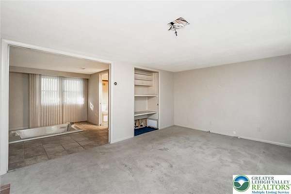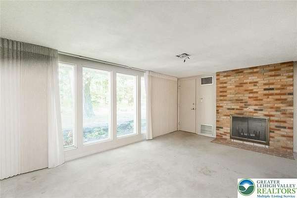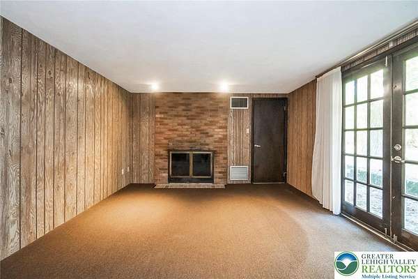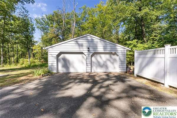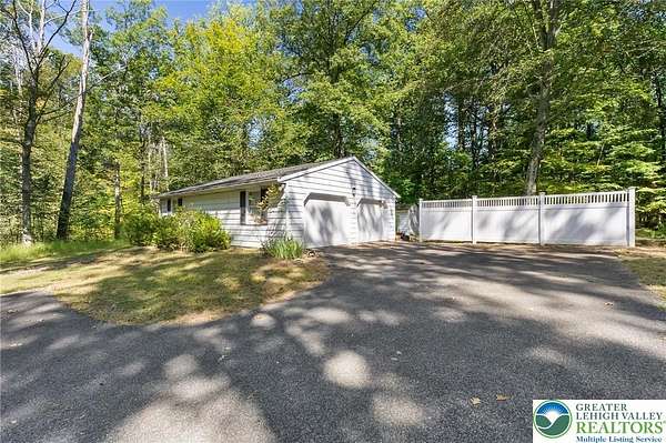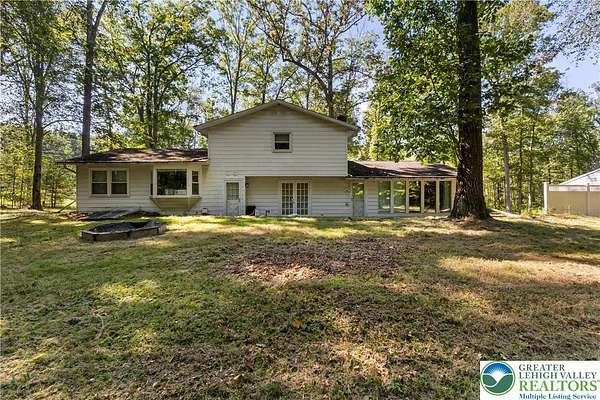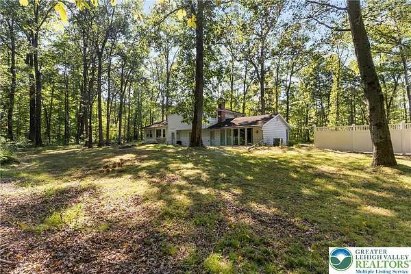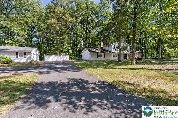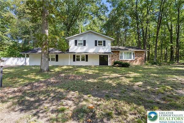 Privacy and space define this inviting 5 Bedroom Split Level, set on nearly 3 acres of flat and wooded land in the highly desirable Southern Lehigh School District. The well-designed layout features a bright living room, den/study, and a welcoming family room anchored by a double-sided fireplace that also enhances the first-floor primary suite. The suite offers a spacious walk-in closet and full bath with sunken tub, creating a private retreat. The kitchen blends functional beauty with a view of the gorgeous grounds, making everyday living and entertaining a pleasure. Three additional bedrooms and two more full baths provide plenty of room for family or guests. Radiant heat and central air ensure year-round comfort. This home offers a very solid foundation, with plenty of opportunity for a new owner to bring their ideas! Additional highlights include a full basement with sump pumps, an oversized two-car garage, and a large shed for storage. This home presents an excellent opportunity for a new owner to update to today's style and make it their own. Surrounded by wooded privacy yet just minutes from major routes, this rare property combines a serene setting with everyday convenience-an exceptional chance to create your dream home in a sought-after location.