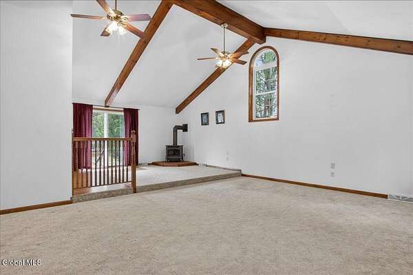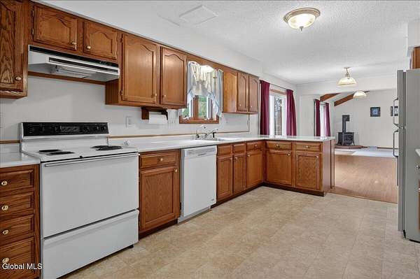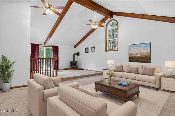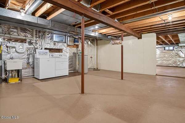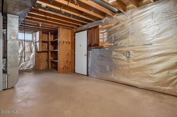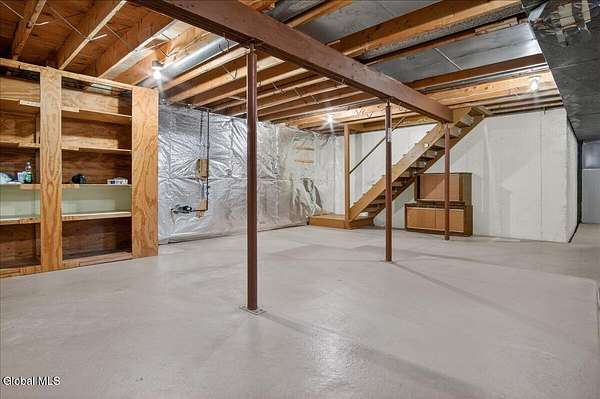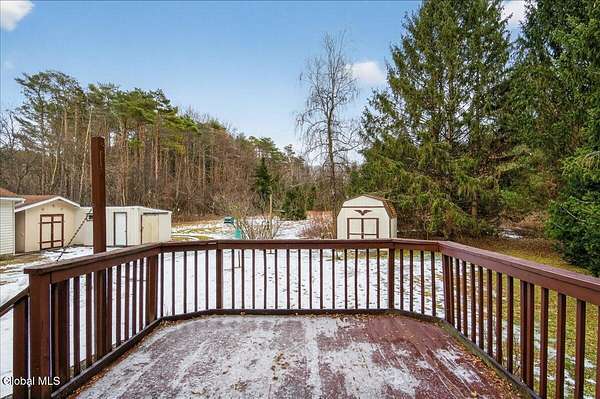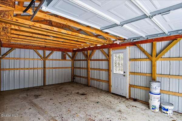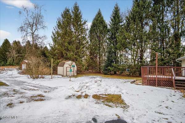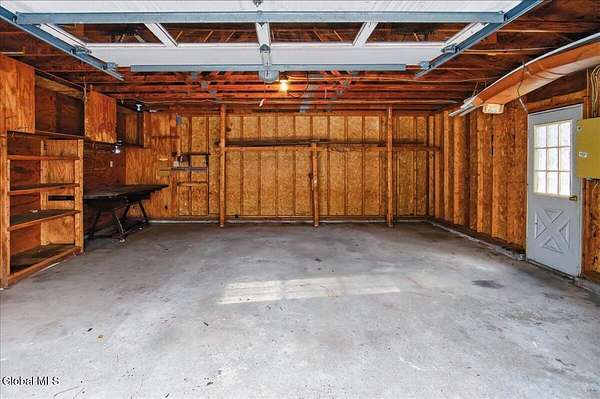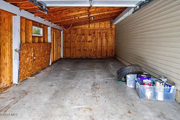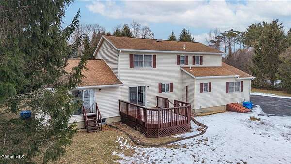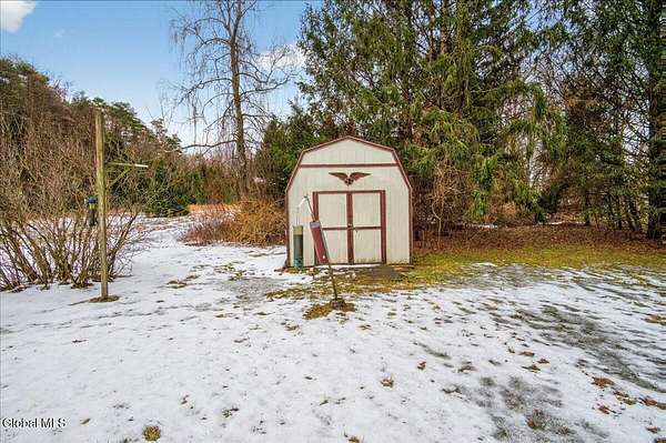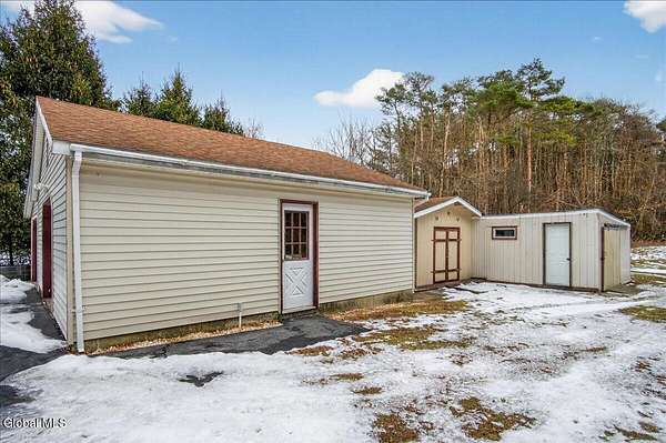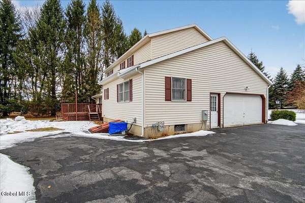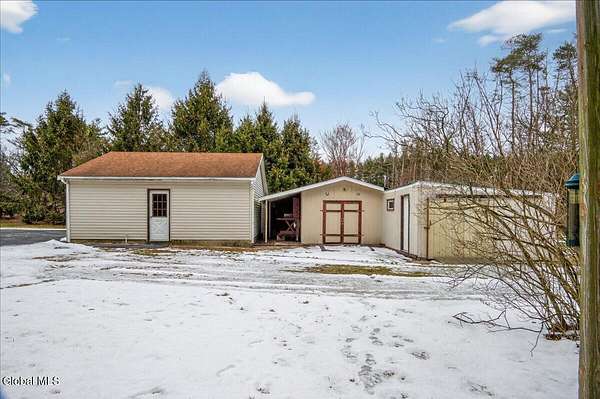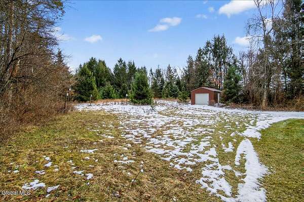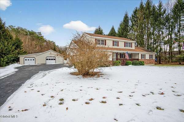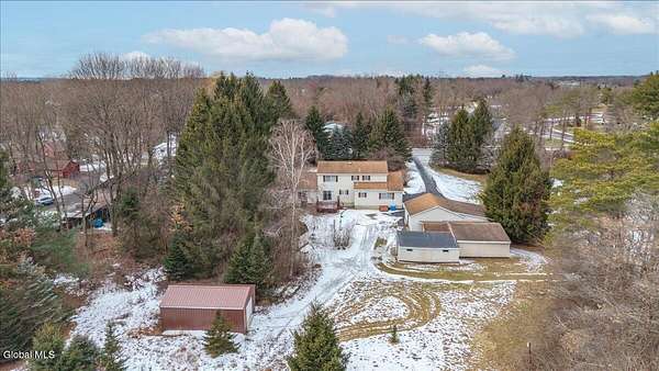 Situated on 3.74 private acres and set well back from the road within the Shenendehowa School District, this 2,461 square-foot home features 3 bedrooms, 3 full bathrooms, a living room, dining room, spacious great room, and an expansive basement with Bilco doors. The home is surrounded by open land and natural surroundings including 3 detached garages/outbuildings that offer exceptional flexibility for vehicle storage, hobbies, equipment, or additional workspace. The setting provides a sense of privacy while still being conveniently located in Clifton Park. The basement with Bilco doors adds another layer of opportunity, ideal for extensive storage, a workshop, or future finished space to increase usable square footage and value. With generous acreage, versatile structures, and a peaceful backdrop, this property delivers space, privacy, and opportunity in a desirable location. The detached garage spaces are approximately: 23'L x 14'W (2) and 23'L x 23'W.