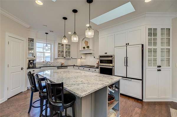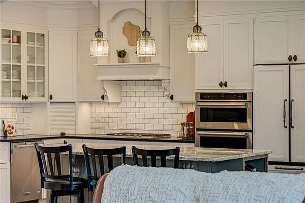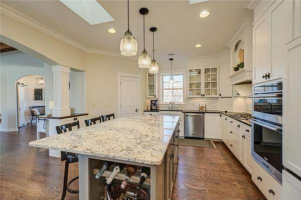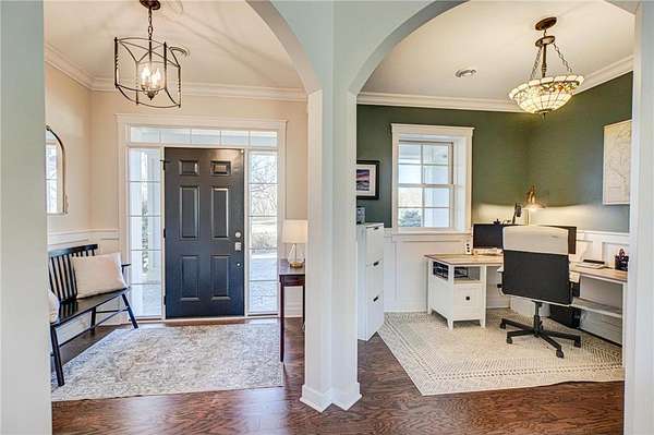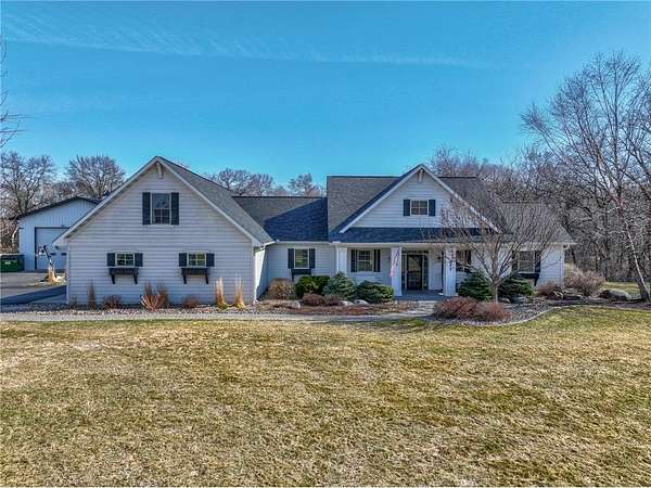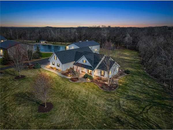 Experience refined design and exceptional efficiency at 877 Yellowstone Trail. Bathed in natural light, this beautifully crafted home showcases an open-concept layout enhanced by custom millwork, elegant cabinetry, multiple fireplaces, and a stunning three-season porch that invites you to relax and unwind. Designed for effortless main-level living, the home features a designer kitchen, a versatile bonus room above the garage is perfect for the 4th bedroom—and a luxurious primary suite complete with its own fireplace, a soaking tub, and a separate shower for a true spa-like retreat. Garage is equipped with an EV charging outlet (charging cord not included). The impressive 40' x 64' pole barn offers incredible flexibility for hobbyists or business use, featuring spray foam insulation, a dedicated shop/office space, and a ¾ bath. Both the home and pole barn are served by separate geothermal systems, delivering energy-efficient, multi-zone in-floor radiant heat for optimal comfort year-round. Built with ICF construction for enhanced durability and efficiency, this Divine Custom Home is a rare blend of craftsmanship, comfort, and sustainability—an exceptional opportunity to live beautifully while embracing smart, modern living. Please watch video!!