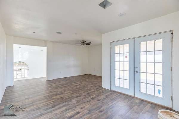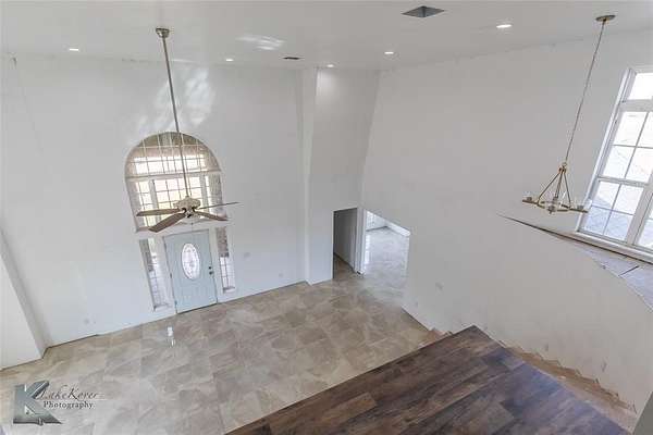 BRING YOUR IDEAS! This unfinished 3,347 sq ft home sits on 2 acres and is ready for someone to bring their vision to life. The spacious floor plan includes 5 bedrooms, 4 bathrooms, and 2 living areas--one featuring an over-sized wood-burning fireplace for cozy gatherings. With dual staircases, an upstairs balcony patio, and a 2-car garage, the layout offers both charm and functionality. The home is all-electric, with city water, a septic system, central heat and air, and foam insulation throughout for energy efficiency. Ceiling fans and light fixtures already installed. There's even the possibility to purchase additional acreage if you're looking for more space to expand. A great opportunity to customize and complete this large home just the way you want it! Vacant and easy to show.