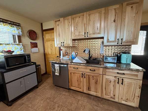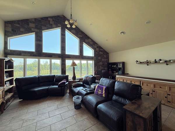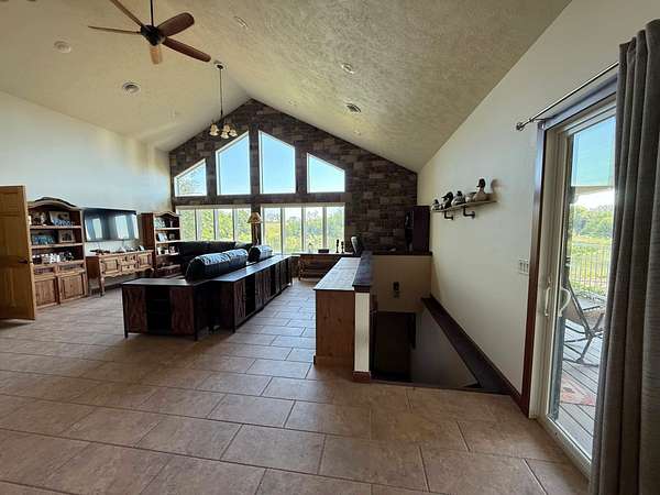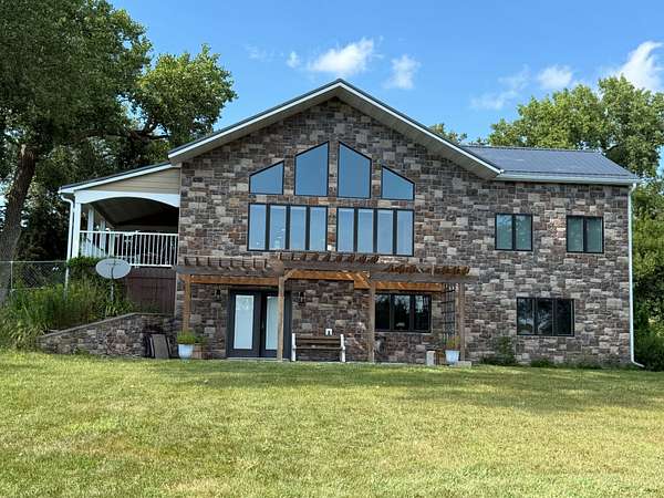 Cabin with 8.95 acres & Spring Fed Pond87731 514 Ave.Orchard, NE 68764 Contact Dan Rohrer, Broker (402)841-1360 Description:We get calls weekly from folks wanting to find a cabin with a fishing pond, well here it is! This property offers a modern cabin situated on 8.95 surveyed acres with a well-stocked spring-fed pond. The structure started out as a small pheasant hunting cabin but was later extensively remodeled and had several large additions added. The main floor offers a large great room with cathedral ceilings and large windows overlooking the pond below. The main level also features a large master suite with a spacious walk-in closet and master bath. The kitchen boasts hickory cabinetry, a large pantry, and high-end tile flooring and custom stonework throughout. There is also a main floor laundry, a second bathroom, and a second bedroom/office on the main level. The fully finished lower walk-out basement consists of a large family room, (2) non-conforming bedrooms, a utility room, a bathroom, and an abundance of storage space. The cabin has propane and electric heat sources, central a/c, and a propane Generac backup generator. Your family will enjoy a large covered deck, lower-level patio, a private dock on the pond, a covered picnic shelter situated under the shade of mature cottonwood trees, an additional storage shed, a large paved driveway, and a recently constructed oversized four-car attached garage. The pond is well stocked with bass and crappie and has an impressive concrete retaining wall and walkway along the north shoreline below the cabin. Study the pictures and maps, and call for an appointment to view this awesome recreational retreat! Directions: