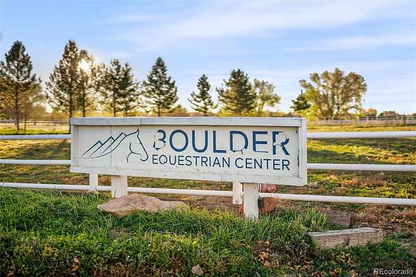 OPEN HOUSE SUN 4/19 FROM 12PM TO 2PM - INCOME POTENTIAL FOR A WONDERFUL HORSE PROPERTY AND COME LIVE IN YOUR DREAM HOME. OPTIONS FOR A HORSE BOARDING/RETREAT/THERAPY/EVENTS/CLASSES AND CAMPS/FARM AND RENTAL PROPERTY. HAVE YOUR BUSINESS RUNNING QUICKLY - SELLER CAN HELP SHARE THEIR CONTACTS. OTHER USES FOR THIS PROPERTY ARE ALSO AVAILABLE. Experience one of Boulder County’s rarest opportunities — SPECIAL USE PERMIT ALLOWING 45 HORSES (IMPOSSIBLE TO GET TODAY), located in unincorporated Boulder County with expansive Front Range views and strong income potential! Create a year-round fully operational equestrian center which includes a BRAND NEW INSULATED INDOOR RIDING ARENA 150' × 90' with premium rubber-sand footing and professional lighting for year-round riding and training. 3 outdoor arenas include: 150' × 150' lighted arena, 65' × 90' training arena, and regulation dressage arena suitable for clinics, competition prep, and professional programs. 5 barns with flexible layouts offer up to 45 stalls each equipped with automatic waterers, organized feed storage and tack rooms. A covered hay barn stores approximately 6,720 small bales and a 600 sq ft shop provides space for tools and equipment. The 5-room clubhouse (NEW ROOF!) overlooking the indoor arena offers client offices. Residential Home - 3 Bedroom/2 Bath provide on-site living for an Owner, Trainers OR come build your dream home – home square footage can be expanded or moved to a different location on the property. Located right by Teller Farm Open Space Trail and 6 miles from Downtown Boulder, the property offers an unbeatable blend of privacy. AFFORDABLE/LOW UTILITIES/LOW OPERATING COSTS) include Left Hand Water District (public water), a domestic well for 1 acre, 2 septic systems.