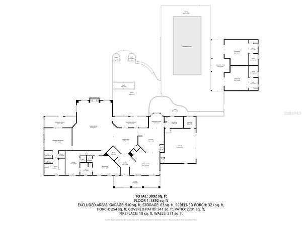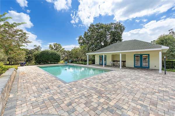 A detached guest area sits just off the pool, offering two private bedrooms, each with its own bath, and a small exterior kitchenette -- perfect for visiting friends or family.
