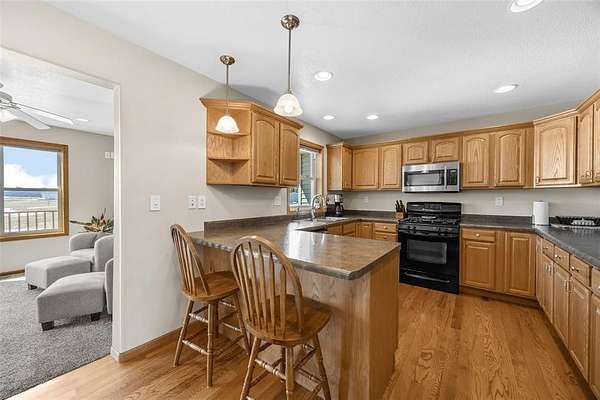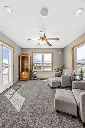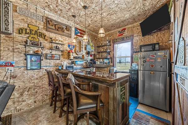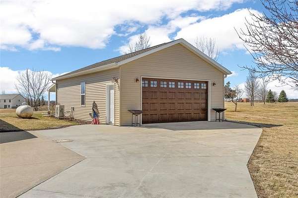 Escape to your acreage oasis just outside of Tipton-perfectly located for an easy commute to Iowa City, Cedar Rapids, or the Quad Cities. This meticulously cared-for home offers the ideal blend of peaceful country living and everyday convenience. Surrounded by mature trees and a beautifully landscaped, manicured yard, this property provides both privacy and picturesque views in every direction. Inside, you'll find four bedrooms on the main level, including a spacious primary suite with its own attached bath, plus a fifth non-conforming bedroom in the lower level. The home is equipped with whole-home surround sound and custom lighting with dimmable features, creating the perfect atmosphere whether you're entertaining or relaxing. Enjoy the beauty of every season from the four-seasons room or step outside onto the large deck overlooking the countryside. The walkout basement offers a blank canvas to make your own, with the potential to expand this home to over 3,000 finished square feet. Step outside and unwind under the pergola-complete with furniture that stays-perfect for cozy spring nights by the fire. The attached oversized garage may appear to be a two-stall, but with a double-deep bay, it can accommodate three vehicles.Don't miss the one-of-a-kind shop and man cave, built in 2022. Featuring a workspace in the front and the ultimate hangout spot in the back, it won't disappoint. This versatile space opens to a covered porch where you can take in breathtaking sunsets after a long day. Schedule your showing today, you won't find a more loved home!