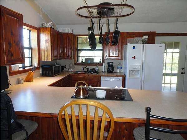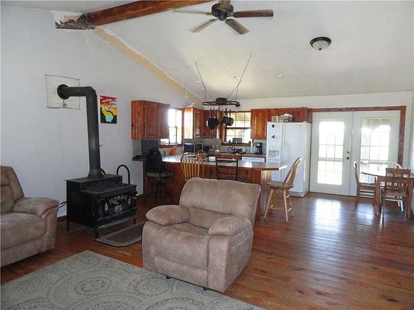 Rustic charm meets modern comfort in this 3 bed, 2 bath home with a view on 36 secluded acres. Features include wood siding, metal roof, real wood floors, central heat/air plus an Ozark Brand real wood stove to warm the whole house on cold winter nights and lower winter heat bills. Large covered front porch and spacious covered back porch with sunset views. Washer, dryer, fridge, cook stove, dishwasher, and wood stove all convey. Private well water now or city water hookup is available. The property also features three ponds and nearly full perimeter fencing. 2 extra rural water meters along the county road allows for possible subdividing for relatives. Fruit trees grow inside a separate fenced dog run and fiber optic internet for working from home. Not far from endless outdoor activities such as camping, fishing, swimming, boating, horseback riding and hunting. 90 minutes from Branson, MO, 40 minutes from Greers Ferry Lake & 30 mins from Mountain View, AR-a popular vacation spot near Blanchard Springs Caverns.