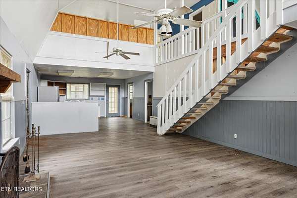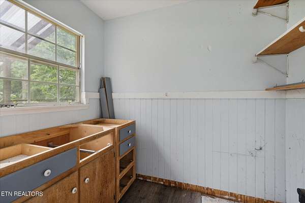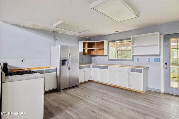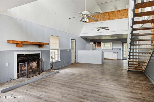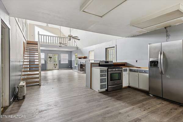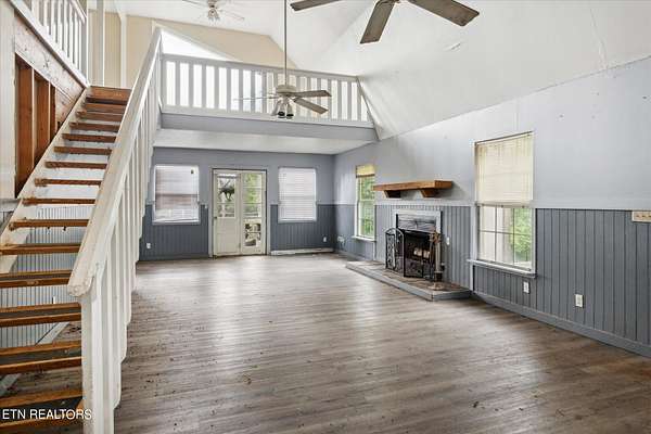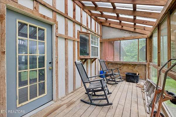 Discover the hidden charm of this unique property nestled on 5.11 picturesque acres, offering breathtaking views of the majestic Round Mountain. This 1-bedroom, 2-bath home spans 1,899 square feet, including 3 bunk-rooms, additional office space, and is a perfect opportunity for anyone seeking tranquility or investment potential. Step inside to find an inviting atmosphere with abundant natural light and the warm glow of a wood-burning fireplace. The spacious living area provides a welcoming space to relax and enjoy the serene surroundings. The open layout ensures every room is bathed in natural light, creating a bright and airy ambiance. The home is thoughtfully equipped with solar panels, providing backup electricity to the refrigerator and water heater, ensuring sustainability and efficiency. The property's extensive acreage offers endless possibilities for gardening, farming, or simply enjoying the great outdoors. For the outdoor enthusiasts, you're settled in the mountains with a short drive to Round Mountain Campground, Max Patch and Hot Springs, NC. Embrace the opportunity to add your personal touch and transform this property into a dream haven. Whether you envision a peaceful homestead or a lucrative investment, this property is brimming with possibilities. NOTICE: Please be advised that the deck/porch and garage landing of this property may require some attention to ensure safety. It is recommended that all individuals exercise caution in these areas. This is to serve as notice to other agents and their clients. We encourage any potential buyers to consider this in their viewing and assess the condition as part of their due diligence. Neighboring property is also for sale 856 Little Berry Way, Del Rio, TN 37727 - Call Listing Agent to inquire about purchasing the properties together.