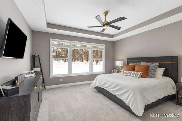 Why wait to build when you can move right into this nearly new, beautifully customized Maxwell home in the gated community of Squire's Corner? Tucked into a peaceful, wooded setting, this home offers the perfect blend of privacy, comfort, and thoughtful design-all in an amazing neighborhood just minutes from downtown Rockford and top-rated schools.The open and inviting main level was expanded to create a spacious living area made for everyday living and easy entertaining. The heart of the home is the kitchen, featuring a large quartz island, walk-in pantry, and warm, high-end finishes that flow effortlessly into the living space with a cozy gas fireplace. Oversized windows throughout fill the home with natural light and serene wooded views. The owner's suite is a true retreat, offering a generous walk-in closet, double vanity, and a beautifully tiled shower with space to add a stand-alone tub. A bright Michigan Room provides the perfect place to relax and enjoy the surrounding nature year-round.The finished walkout lower level adds even more flexibility with two additional bedrooms, a kitchenette, and access to a private patioideal for guests or entertaining. An expanded three-stall garage offers extra depth, tall doors, and space for hobbies, toys, or larger vehicles. Every detail of this home was thoughtfully upgraded, reflecting quality craftsmanship and a warm, welcoming feel throughout. If you've been dreaming of new construction without the wait, this one-of-a-kind home in Squire's Corner is ready to welcome you!
