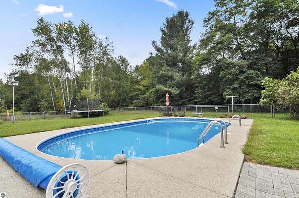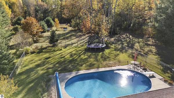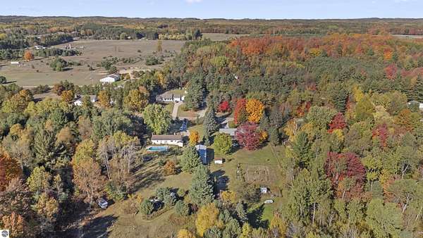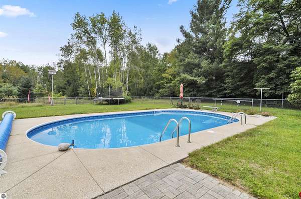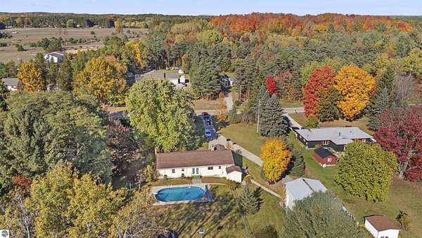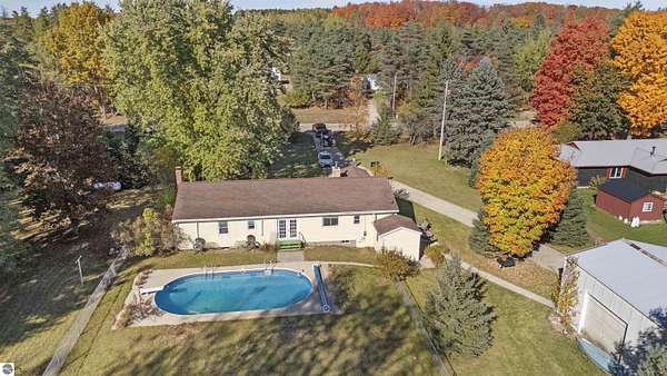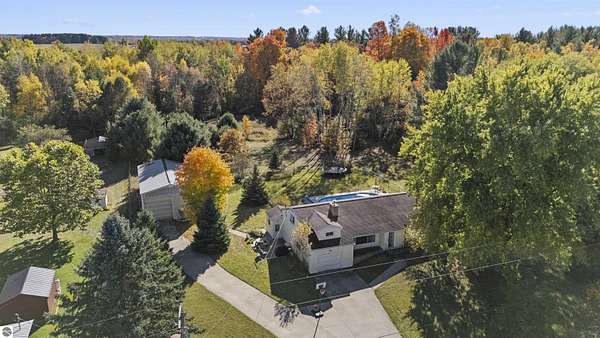 What a Rare Find! Tucked away on a gorgeous 22-acre wooded parcel just north of town, this property offers the perfect blend of comfort, privacy, and recreation! This well-kept 3-bedroom, 2-bath home features a full, partially finished basement complete with a cozy brick fireplace--perfect for relaxing on cool evenings or entertaining guests. Step outside and enjoy your own backyard oasis with a beautiful in-ground pool surrounded by a spacious concrete patio, ideal for summer gatherings and outdoor fun. The attached 1-car garage adds convenience, while the impressive 24x46 pole barn with 12-foot sidewalls provides ample space for all your equipment, toys, and workshop needs. Whether you're seeking a peaceful home in the woods or a private retreat with room to roam, this property has it all--beautiful natural surroundings, great amenities, and a convenient location close to town.