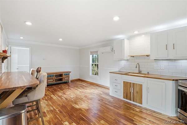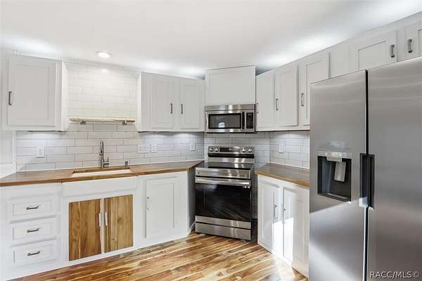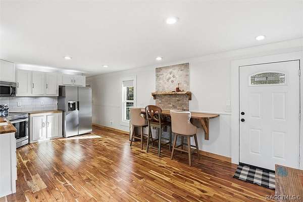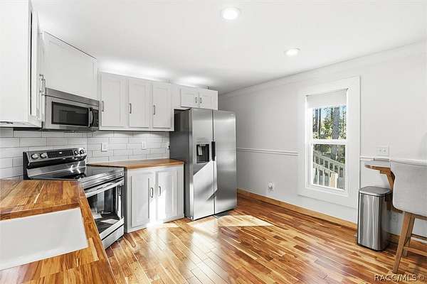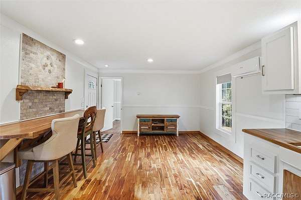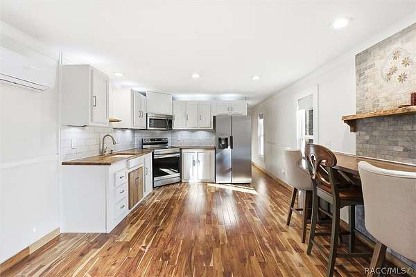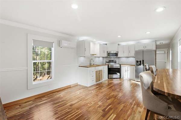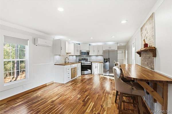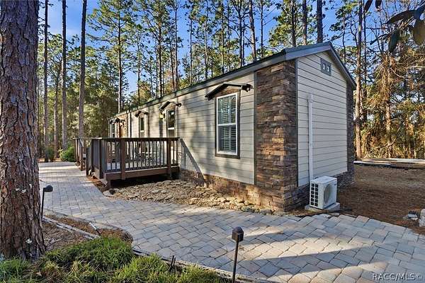Welcome to this beautifully crafted 2-bedroom, 1-bath, 2016 home, where no expense was spared. Backing directly to the Withlacoochee State Forest, this property offers unmatched privacy and natural beauty, with the side right property line running parallel to Trail 18 (no motor vehicles allowed), providing direct access to hiking and horse trails. Enjoy peaceful surroundings filled with wildlife, including deer, turkey, and a variety of birds-all with the assurance that the protected forest land behind you will never be built on. Inside, you'll find real acacia wood flooring throughout and mini-split units in every room (three total) for efficient, customizable comfort. The thoughtfully designed kitchen features new stainless-steel appliances, LED lighting, a farmhouse sink, walnut and teak wood countertops, and a cozy eat-in dining area. The bathroom is stunning with travertine stacked stone walls, travertine flooring, and a deep soaking tub. Washer and dryer are included. Exterior features are just as impressive, including LP SmartSide Siding, underground electric service from the utility pole, automatic front exterior lighting, and a commercial-grade septic system. The upgraded well is 280 feet deep with a three-horsepower pump and galvanized casing. An automatic irrigation system is already in place with room for expansion. Outdoor living at its finest! Enjoy an expansive paver deck and firepit with outdoor lighting. A 12x24 Robin brand shed with a roll-up door for storage or workshop space. Zoning allows for up to two horses, making this an ideal property for equestrian enthusiasts. If you've been searching for quality construction, modern upgrades, privacy, and direct access to nature, this one-of-a-kind property delivers it all. You must see it for yourself. Schedule a showing today!