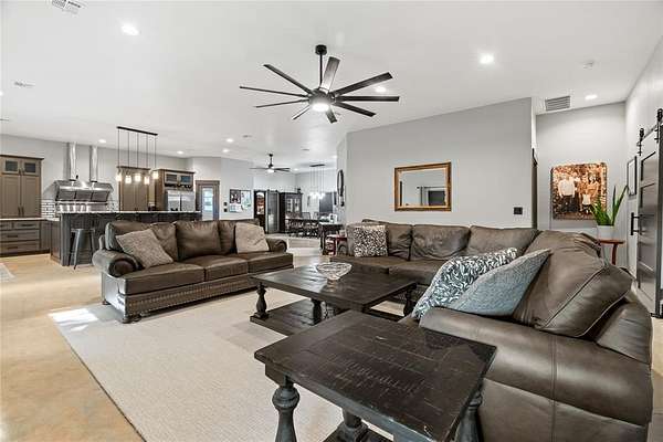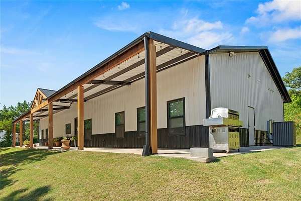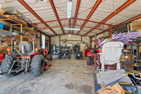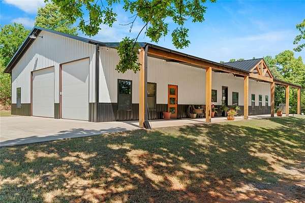Welcome to your dream property! This custom-built 2 bedroom, 2.5 bath Barndominium sits on 10 beautiful acres (m/l) and combines modern luxury with country living. Step inside to an open-concept floor plan. 10ft ceilings, LED lighting throughout. The kitchen is a chef's paradise with a commercial-grade gas range with double ovens, fridge, built-in microwave/air fryer, and plenty of prep space for cooking and entertaining. The spacious primary suite offers a true retreat- complete with a massive walk-in closet, walk-in shower, dual vanities, and a built-in makeup station. The second bedroom is designed as a private suite, perfect for a mother-in-law, guest or extended family. A large laundry room offers flexibility and could easily be converted for additional use. Outside you will find not one but TWO shops, 24x40 and 24x30, RV hookups, 2 car garage with commercial doors, wrap around porch, and some much more. portable generator will stay with the property.