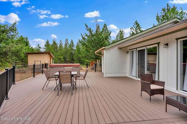 Welcome to your serene North Idaho retreat! Nearly 11 acres of privacy backing to Idaho state land with direct access to miles of trails for hiking, riding, and hunting. Wildlife frequent the property, including moose, deer, and turkeys. Located just minutes from Spirit Lake boat launch, Farragut State Park, and the new Super 1 Foods. This well-maintained, single-level home offers 3 bedrooms, 2 bathrooms, and comes move-in ready with all appliances included. Enjoy outdoor living with a hot tub on the huge NEW back deck, Driveway and large building pad installed and ready for a shop, fire pit, and swing set up for peaceful evenings under the stars. Quiet, private setting with wonderful neighbors - a true North Idaho lifestyle property!