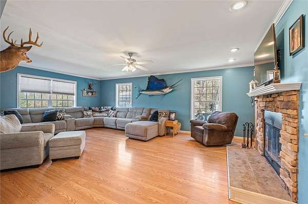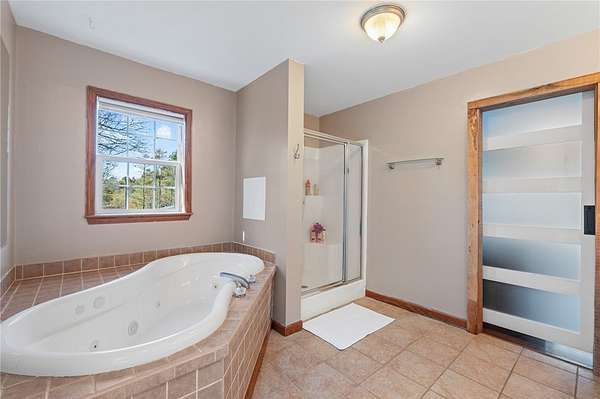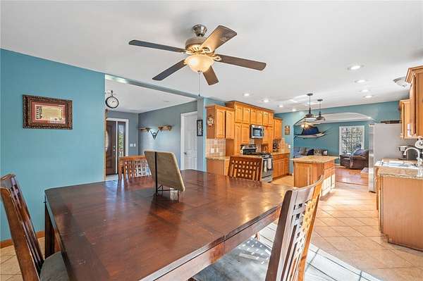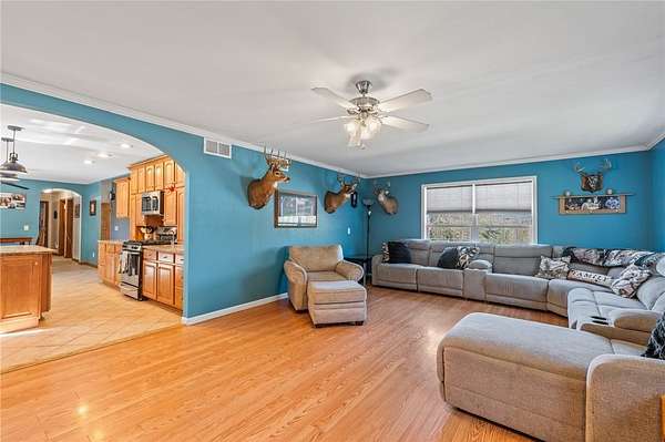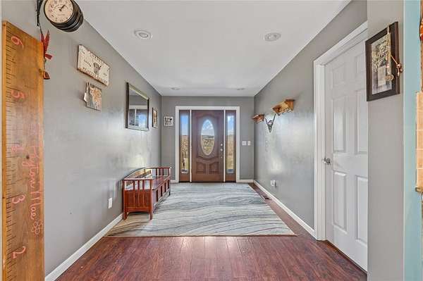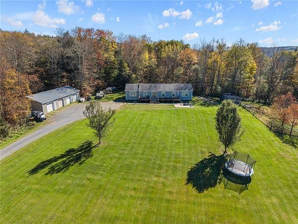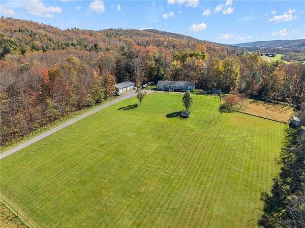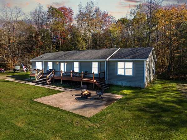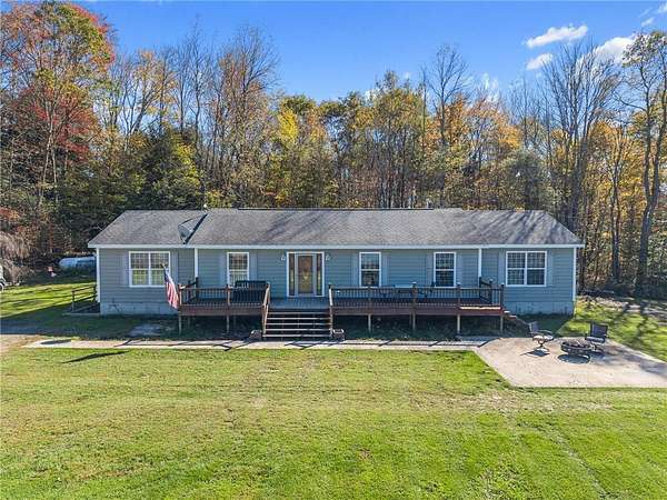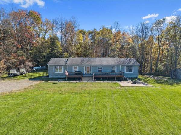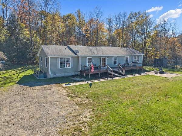 Imagine the joy of owning a peaceful and private 41-acre property, offering you a rare opportunity to enjoy the tranquility of rural life while remaining close to modern conveniences. This newer ranch-style home perfectly blends comfort, space, and rural charm, making it an ideal retreat for those seeking a serene lifestyle. The main level of this home boasts 1,900 square feet of well-designed living space. It includes three spacious bedrooms, a separate office or bonus room, and two full bathrooms. The open-concept kitchen, dining, and living room area is enhanced by a wood-burning fireplace, creating an inviting and cozy atmosphere. At the opposite end of the home, you will find all the bedrooms, a convenient laundry room, and the primary suite. The primary suite is a haven of relaxation, featuring an expansive walk-in closet and an oversized bathroom with a soaker tub and a walk-in shower. Head downstairs to the walk-out basement, which doubles the square footage of the home. This space features tall ceilings and is already framed with walls, electric, insulation, and drywall, eagerly awaiting your vision for the finishing touch. The possibilities are endless, allowing you to create the perfect space to suit your needs. Step outside and admire the stunning view from the front deck, overlooking the yard, chicken coop, and pastures. After a leisurely ride through the woods, you can park your vehicles and ATVs in the four-bay garage, which offers ample space for all your toys and a potential future workshop. When it's time to unwind, enjoy the privacy of the back deck and relax in your new hot tub. This property is ready for you to embrace the homestead life. With ample space to raise chickens, cows, horses, sheep, and alpacas, you can expand your garden and focus on a farm-to-table lifestyle, enjoying the fruits of your labor. To experience this exceptional property in person, you must make an appointment. Please note that drive-bys are not allowed.