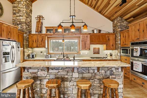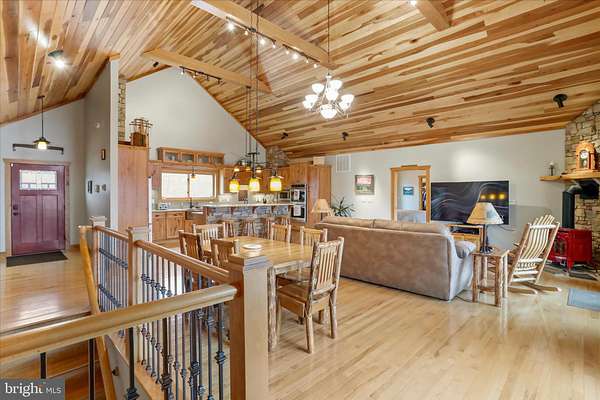 Rising above the surrounding mountains on 51.36 private acres, this extraordinary four-bedroom, four-bath estate captures one of the most commanding settings in the region. Sweeping western mountain views stretch across layered Appalachian ridgelines, delivering sunsets that redefine the end of each day. Though entirely private, the property remains within an easy two-hour drive of Washington, D.C., Northern Virginia, and Maryland-offering rare accessibility without compromise. Constructed in 2013 and encompassing more than 5,200 square feet of finished living space, the residence is built of masonry and concrete, professionally finished to replicate the timeless character of a classic log home. The result is a warm, lodge-inspired aesthetic paired with modern structural durability and reduced maintenance. Exceptionally maintained and thoughtfully enhanced, the home includes a fully finished basement completed after the original construction, seamlessly expanding both living and entertaining areas. Inside, soaring wood ceilings, rich hardwood flooring, custom cabinetry, and extensive stone accents create a refined mountain interior. Expansive windows frame the incredible western views from nearly every vantage point, making the landscape a constant presence. The thoughtfully designed floor plan offers four spacious bedrooms and four well-appointed baths, providing flexibility for family and guests alike. The kitchen anchors the home as a natural gathering space, flowing effortlessly into open living areas designed for both intimate evenings and large-scale entertaining. The lower level introduces a distinctive feature rarely found in properties of this caliber: a secure vault room accessed through a commercial-grade safe door. This private, reinforced space offers exceptional flexibility-whether envisioned as a temperature-controlled wine cellar or configured as a state-of-the-art gun room worthy of the most discerning enthusiast. Outdoor living is equally compelling. A beautifully constructed stone patio welcomes you at the front entry, setting the tone for the craftsmanship within. To the rear, a large covered deck supported by stone columns overlooks the mountains, while a second stone patio below provides an inviting setting for entertaining or quiet evenings under open skies. Additionally, there is water and electric in place for a spa on this western-facing patio, allowing you to enjoy private sunsets in complete comfort. The fenced-in rear yard enhances usability while preserving the complete privacy that defines the estate. Function meets flexibility with both an oversized two-car attached garage and a separate two-car detached garage with electric service of approximately 900 square feet-ideal for additional vehicles, workshop space, or recreational equipment. A whole-home backup generator and integrated security system provide year-round reliability and peace of mind. The land itself reflects West Virginia at its finest, consisting of mature hardwood forest, rolling terrain that is easily huntable, and abundant wildlife. The property offers outstanding hunting opportunities, with a strong population of white-tailed deer and wild turkey, along with the occasional black bear moving through the area. The natural topography and timber create excellent habitat, making the acreage both highly usable and well suited for those who value private, on-site hunting and outdoor recreation. Whether envisioned as a full-time residence, legacy retreat, or future multi-generational compound, this is more than a property-it is the diamond on the mountain, where craftsmanship, privacy, breathtaking western views, and executive-level amenities converge in a setting that is increasingly impossible to replicate.