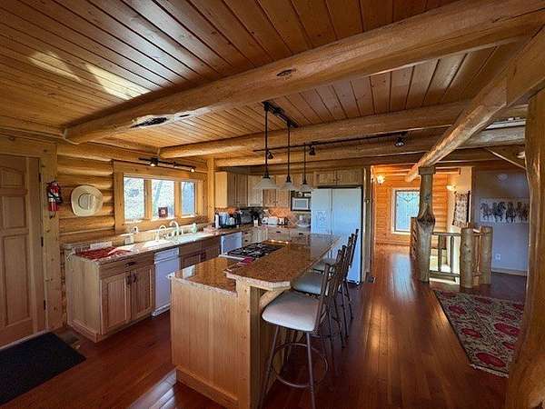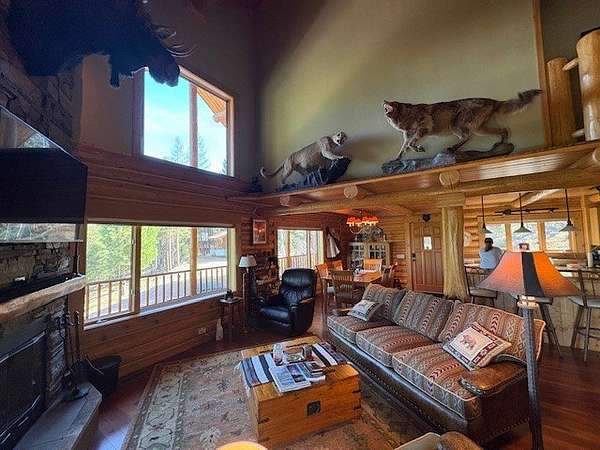 STUNNING VIEWS from this Custom built log home with views of both the Swan and Mission mountain ranges. No detail was spared when designing this 3 bedroom, 3 bathroom home. The main floor is a spacious, open concept floorplan and includes a kitchen with granite countertops and large island with range, living area with floor to ceiling fireplace and opens to the dining area. A full bath, laundry and bedroom are all on the main floor as well. The upstairs includes a large loft great for office or crafting space and the primary suite which includes separate shower and soaking tub. The walk out basement includes a bedroom, bathroom and storage. The tuck under garage is over-sized, features a laundry sink and is heated. There is a spacious toy barn and attached parking space that is a great asset to the property as the home is conveniently located to all that the area has to offer for outdoor sports and entertaining which includes snowmobiling, hunting, fishing, boating, hiking and more just minutes away. Enjoy Seeley, Salmon and other local lakes as well as the Clearwater and Blackfoot rivers and the Bob Marshall wilderness.