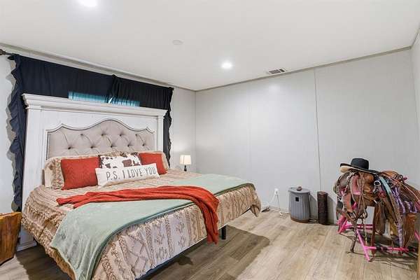 On the opposite side of the home, you’ll find four additional bedrooms. Two share a convenient Jack-and-Jill bathroom, while the other two are situated near the second living area and a full hall bath—perfect for guests or older children needing their own space.