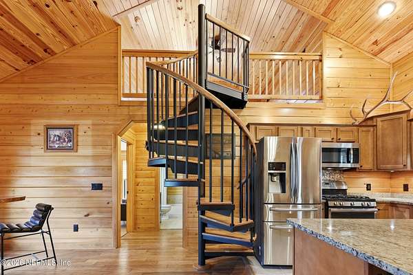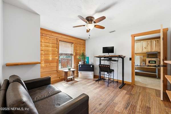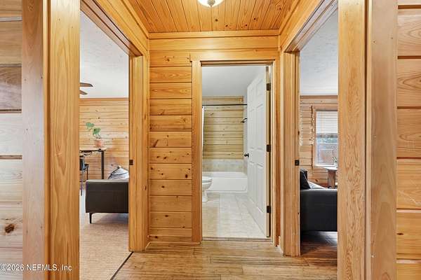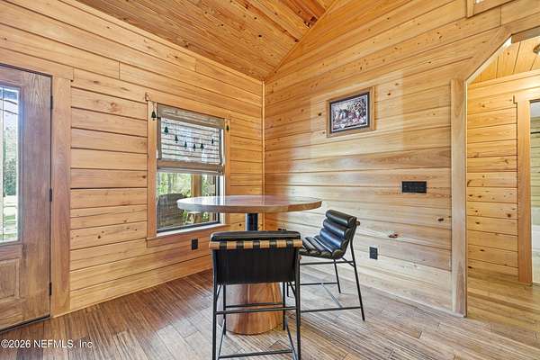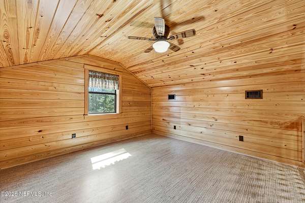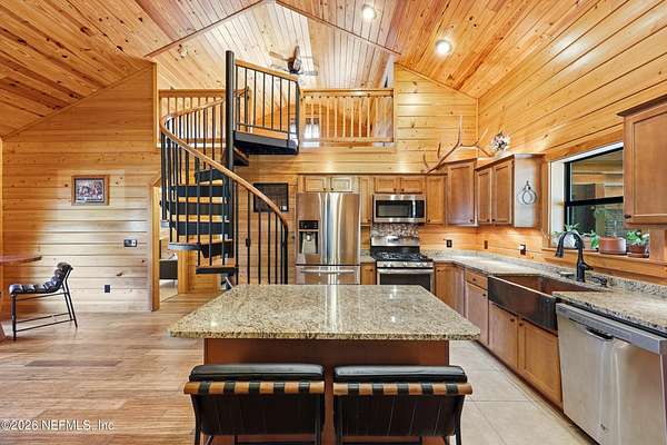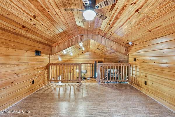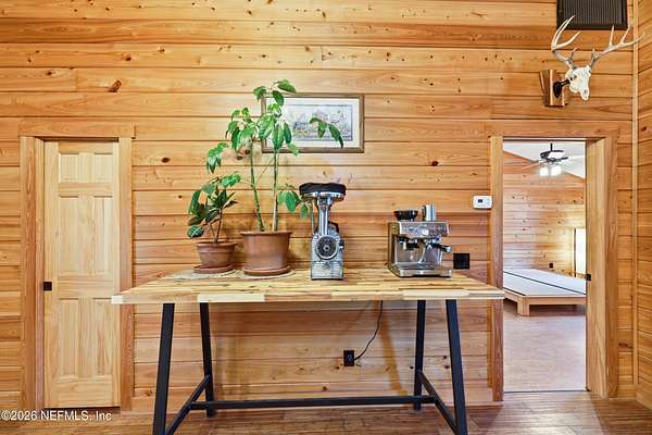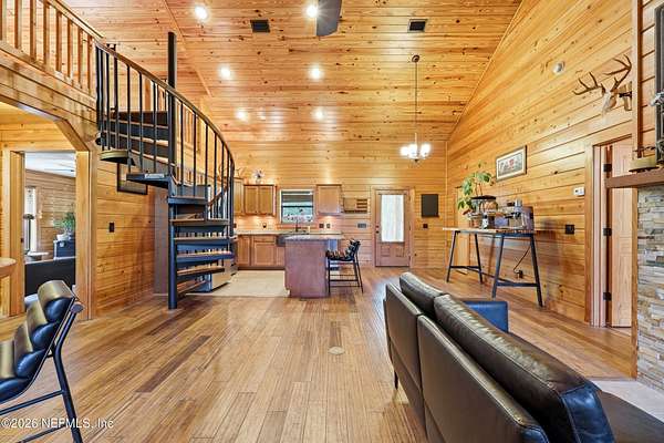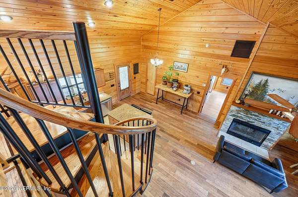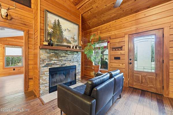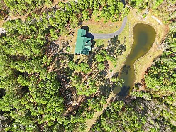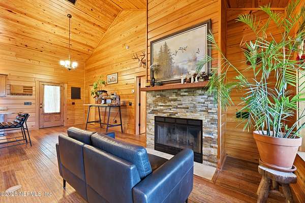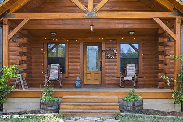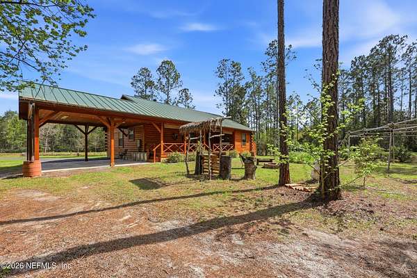 Welcome to this beautiful custom Red Cypress log home, perfectly set on 10 serene acres and offering the charm of cozy country living. Enjoy peaceful mornings on the front porch and relaxing evenings on the back porch surrounded by nature. Inside, the open living and kitchen area features an eat-in island, creating a warm and inviting space for gathering. The spacious owner's suite includes a large walk-in shower and walk-in closet. The loft offers flexibility as an office, playroom, or cozy movie retreat. Step outside and enjoy the natural setting, with plenty of space for gardening, animals, or simply taking in the quiet beauty of the land. The property backs up to the South Prong of the St. Marys River, adding to the peaceful and private surroundings. Additional features include a large laundry room, roof approximately 2 years old, whole-house generator, and added sub panels. Move-in ready and the perfect place to enjoy a relaxed country lifestyle.